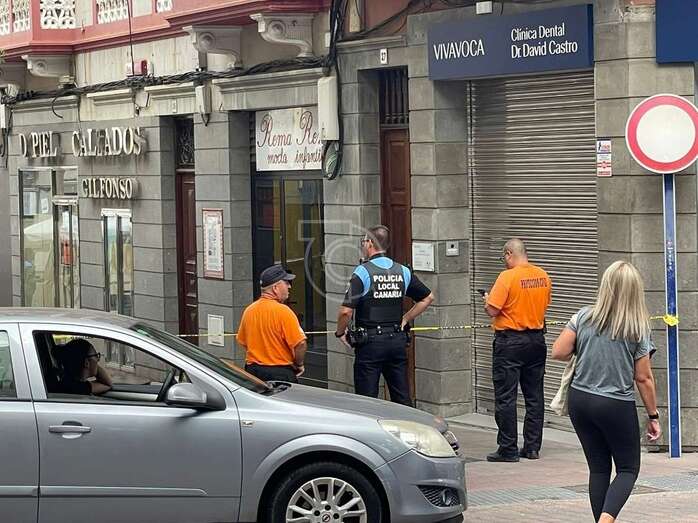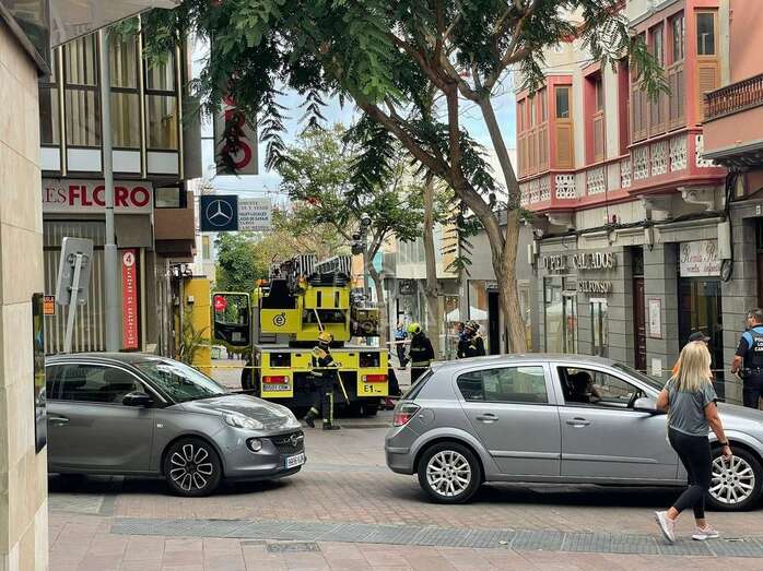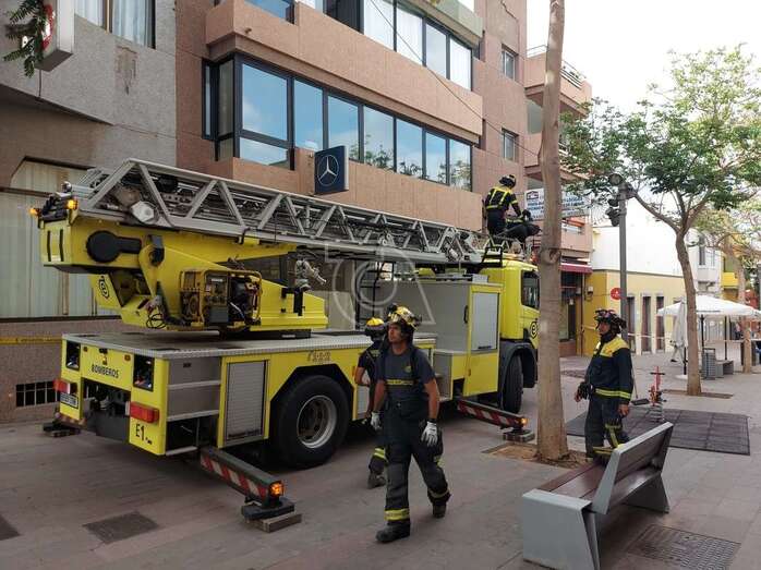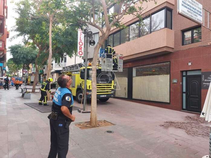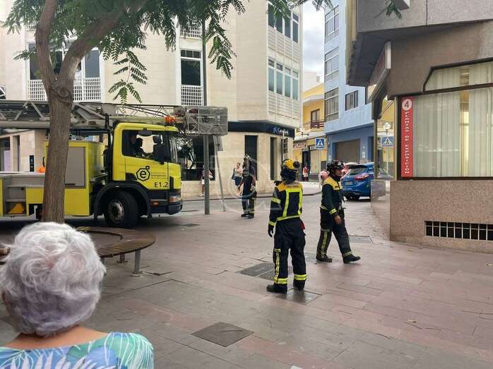 La caída del enfoscado de un inmueble de la Avenida de la Constitución de Telde motiva la intervención de los bomberos
