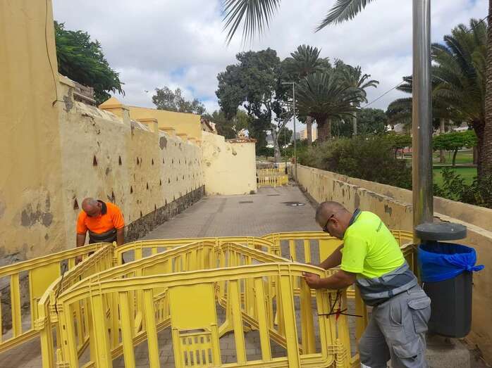 El Ayuntamiento de Telde ha procedido al cierre perimetral de la zona de Casa de la Condesa que este viernes se vio afectada por un incendio. De esta manera, el Consistorio evita el posible peligro por los daños que pueda haber sufrido la estructura de este histórico inmueble del Valle de Jinámar y en el que los bomberos tuvieron que emplear 2.000 litros de agua para sofocar las llamas.