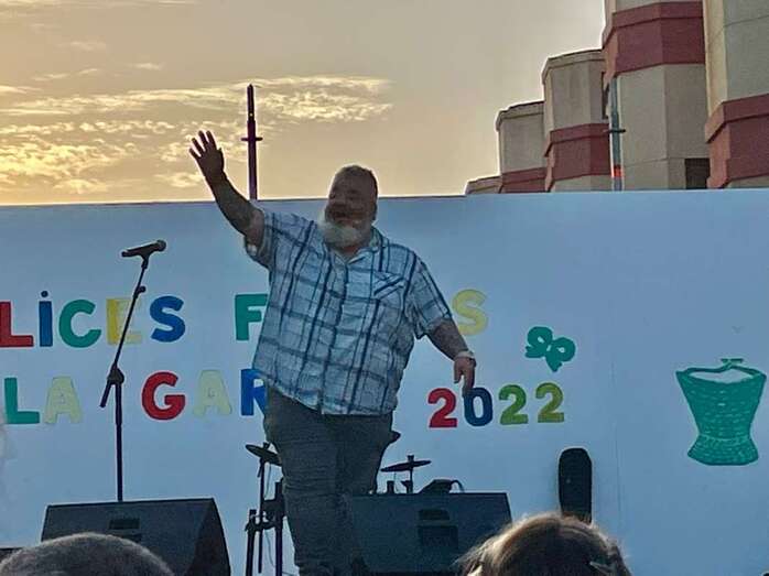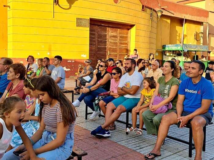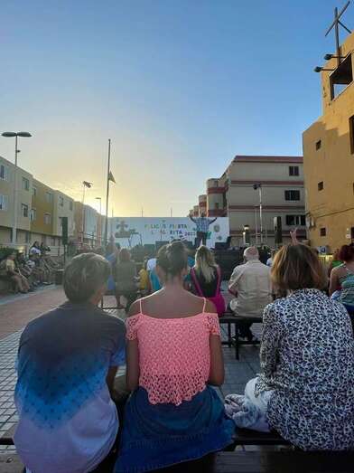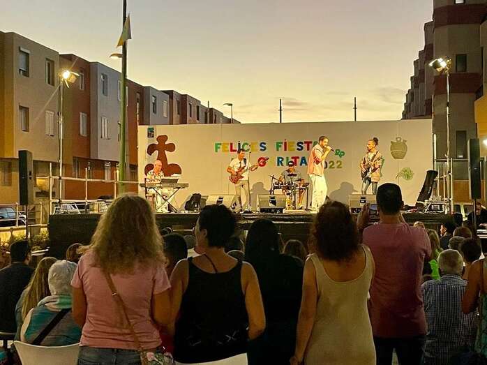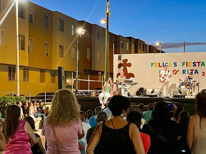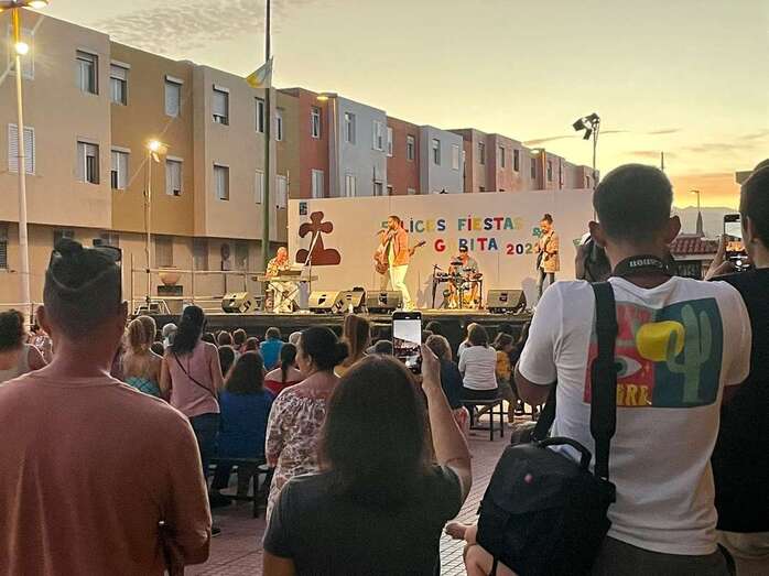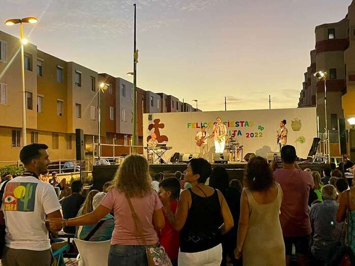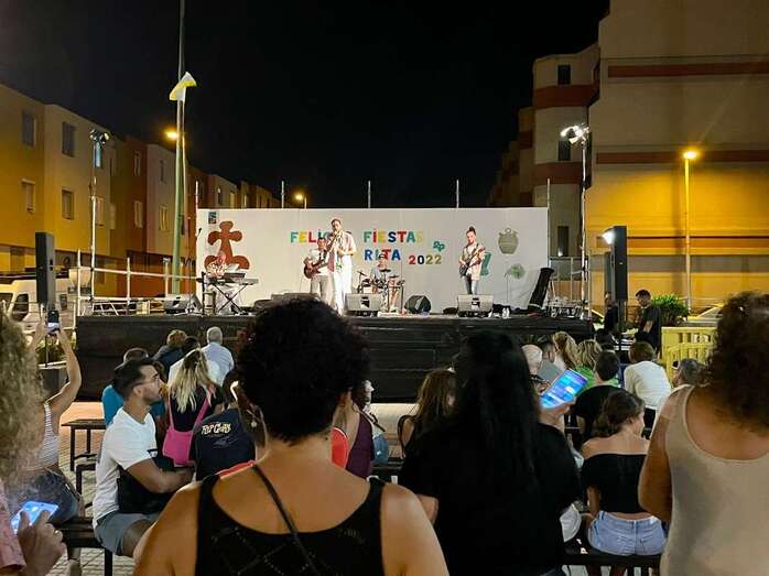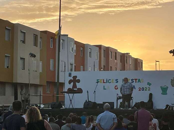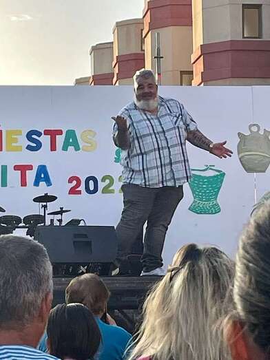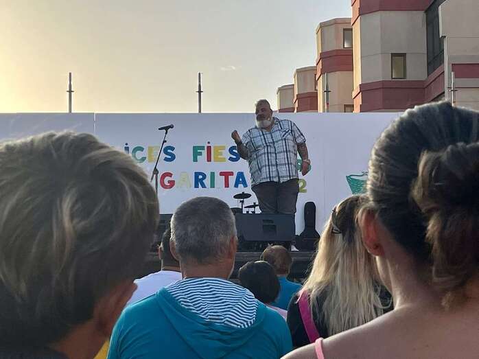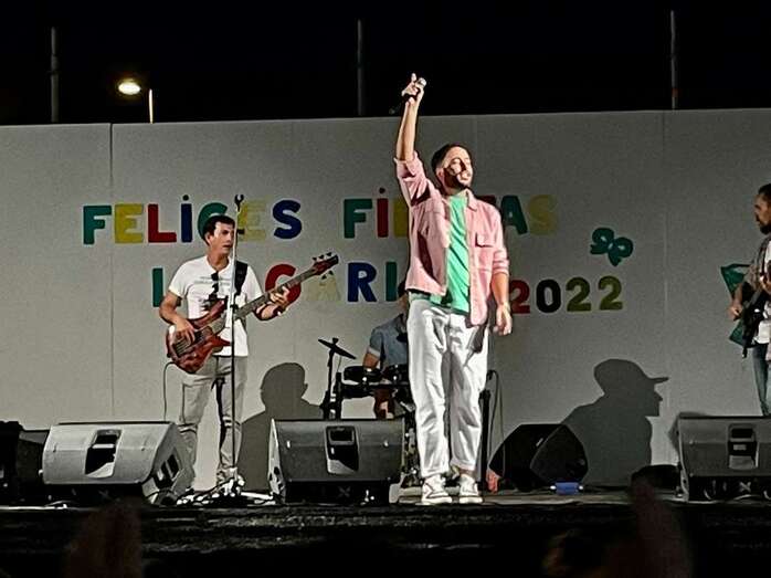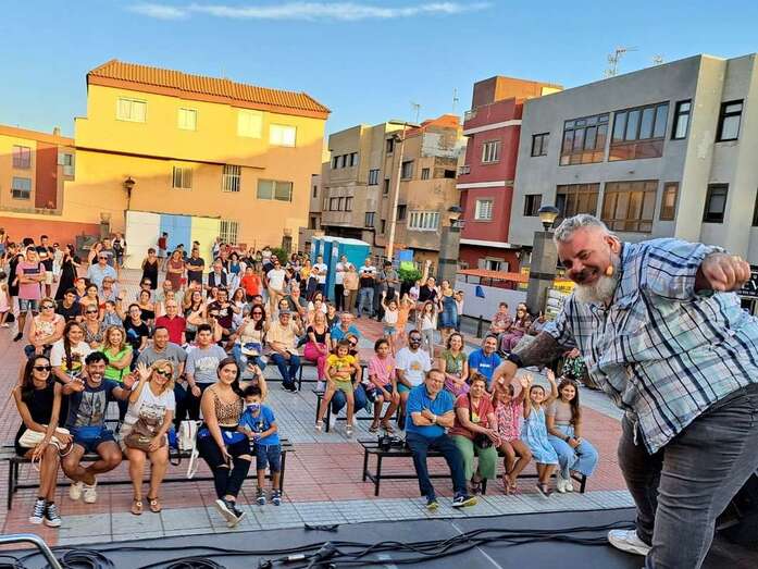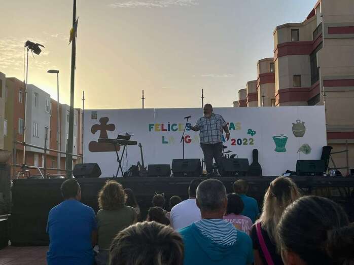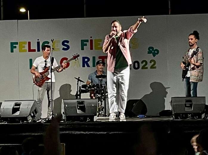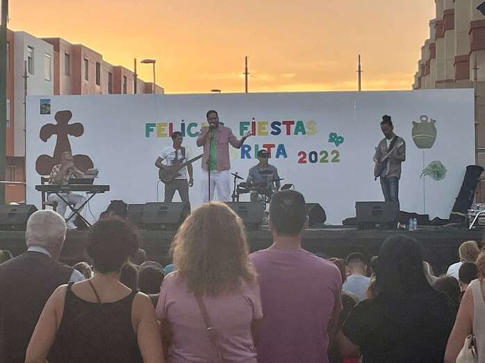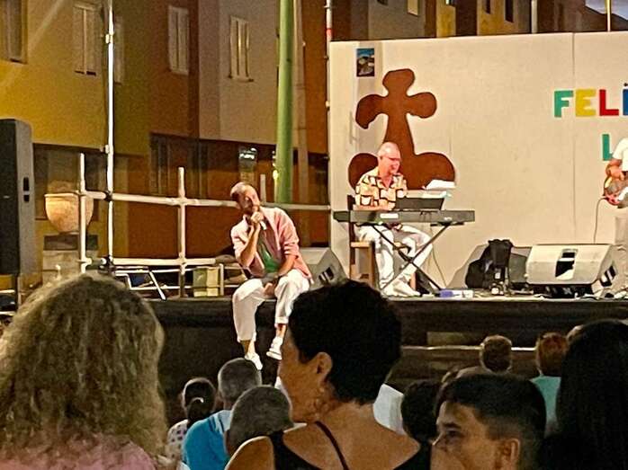 El cantante teldense Adonay Santana ofreció anoche su primer concierto que da en directo en la plaza pública de La Garita, un acto promovido por la Concejalía de Cultura e integrado en el programa festivo del barrio que estuvo animado por la actuación del humorista, también local, Iván El Bastonero.