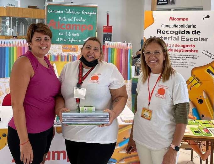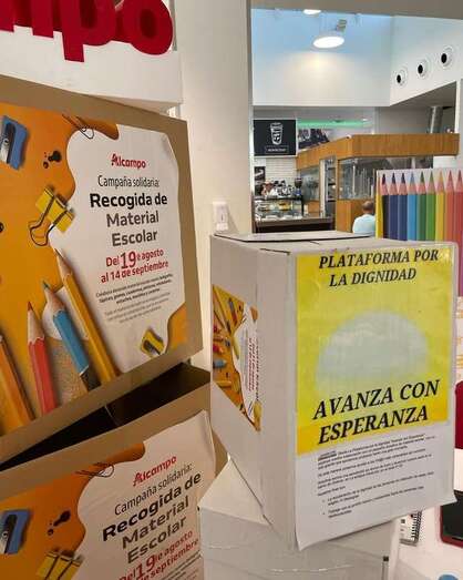 La consejera insular y concejala del Ayuntamiento de Telde, Minerva Alonso, ha arropado y colaborado con la Plataforma Avanza con Esperanza en su campaña solidaria de recogida de material escolar que realiza en Alcampo Telde hasta este jueves, 14 de septiembre.