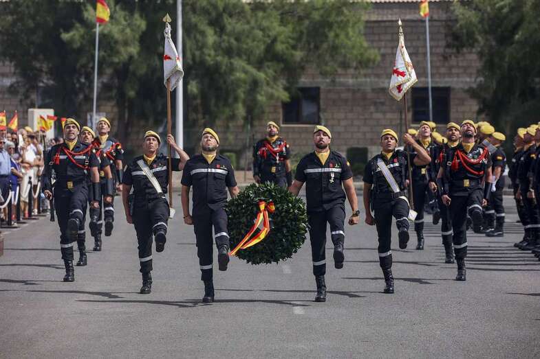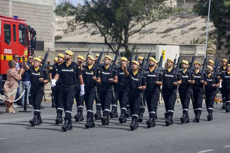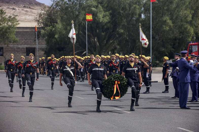 La Unidad Militar de Emergencias (UME) desfiló este viernes en la Base Aérea de Gando (Telde) para rendir tributo a su patrona, la Virgen del Rosario.