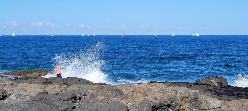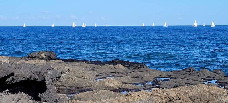 Imagen de la flota a su paso frente a la costa de Telde / Jesús Ruiz