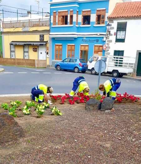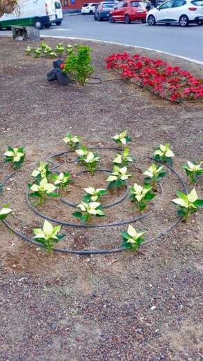Imagen de la plantación de pascuas en rotondas y en jardineras de la plaza de San Juan/TA.