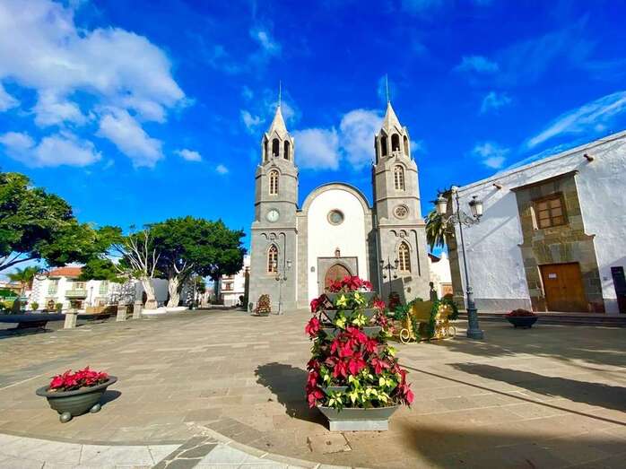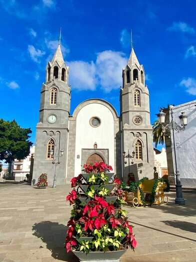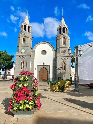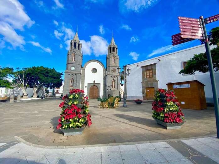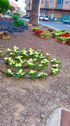 La Concejalía de Parques y Jardines del Ayuntamiento de Telde inaugura la Navidad en la plaza de San Juan y rotondas, con las primeras pascuas que se han colocado en la ciudad.