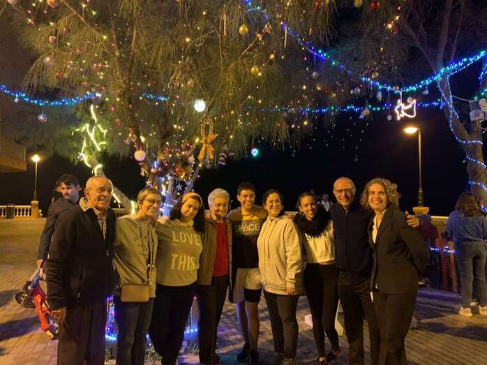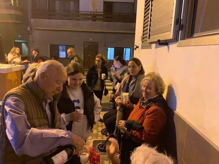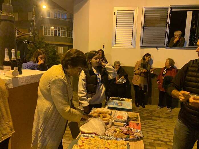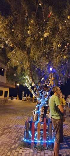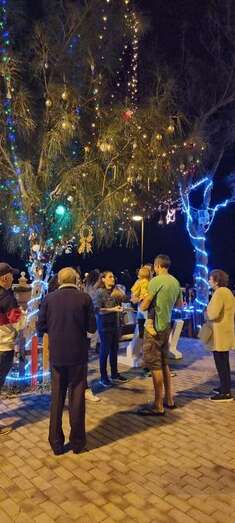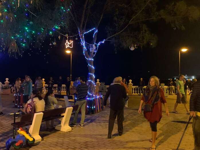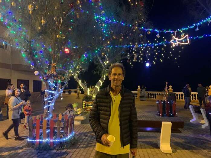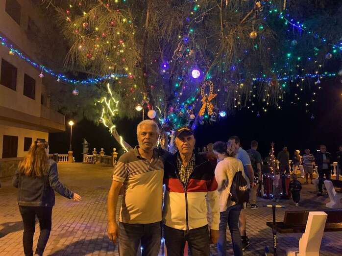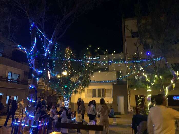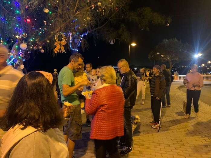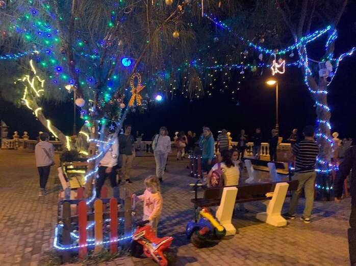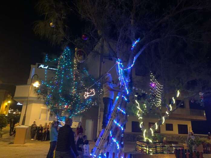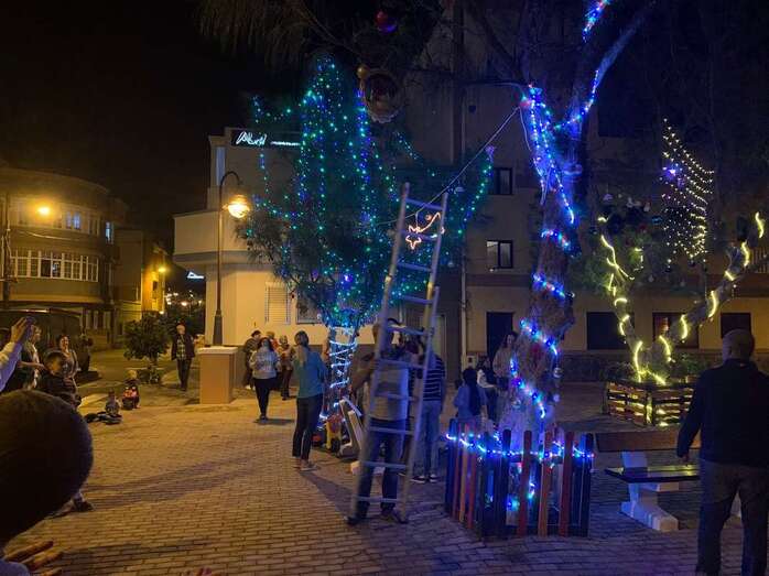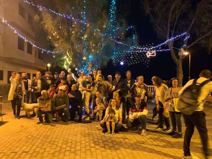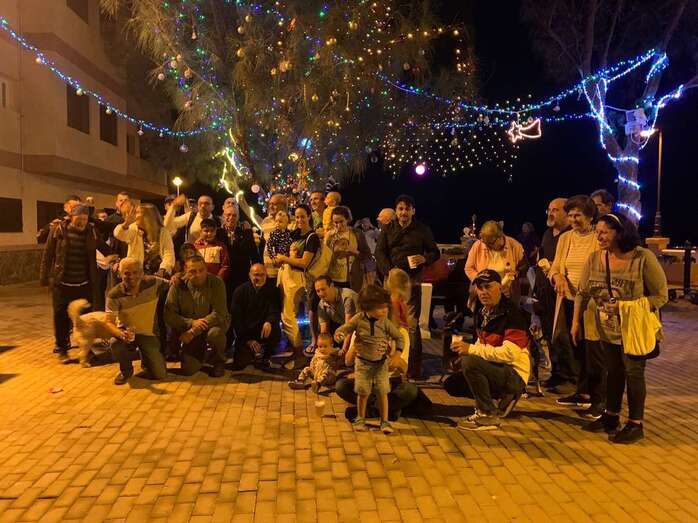 El núcleo costero de Clavellinas estrechó esta noche lazos vecinales con un brindis navideño con motivo del encendido de la iluminación multicolor colocada en los árboles de la conocida como Plaza de Los Pinos, engalanada con adornos propios de esta época del año.