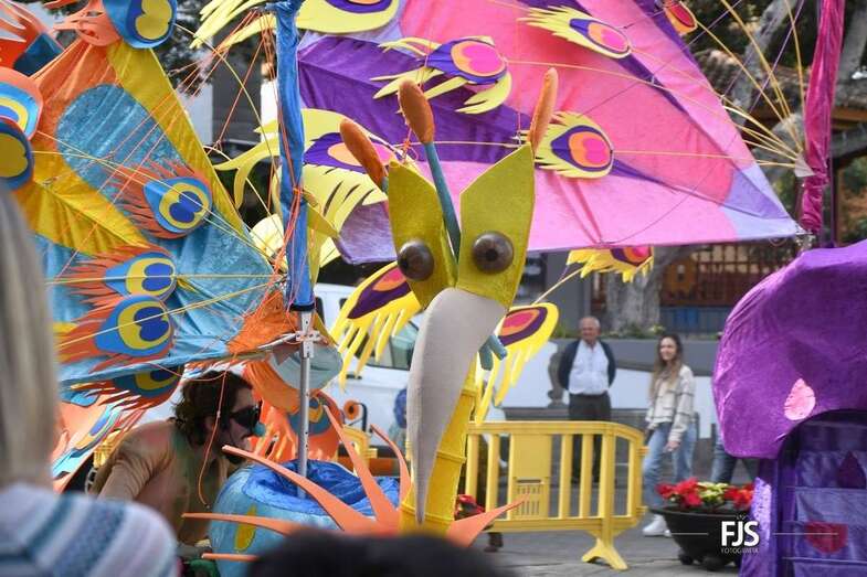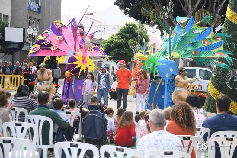 La Zona Comercial Abierta de Los Llanos acogió este mediodía, en el entorno de la plaza pública, el espectáculo Galaxtic: Invasión extraterrestre. Un teatro de calle con títeres gigantes y actores organizado por la Concejalía de Cultura y Gestel.