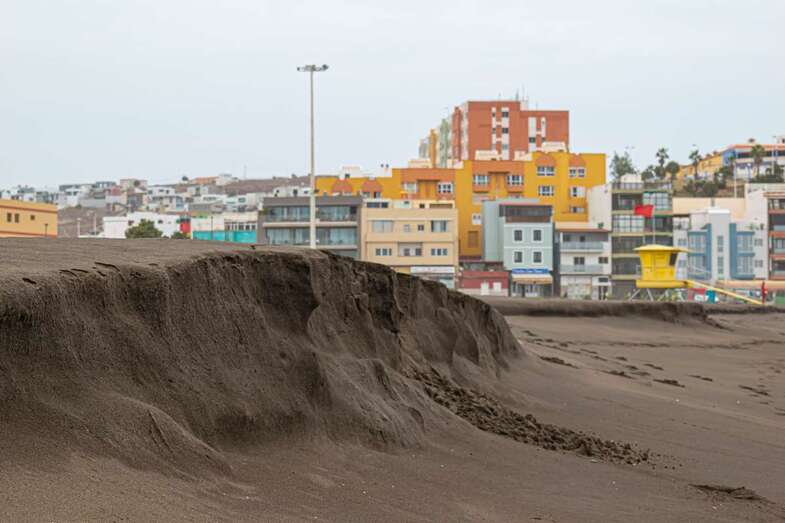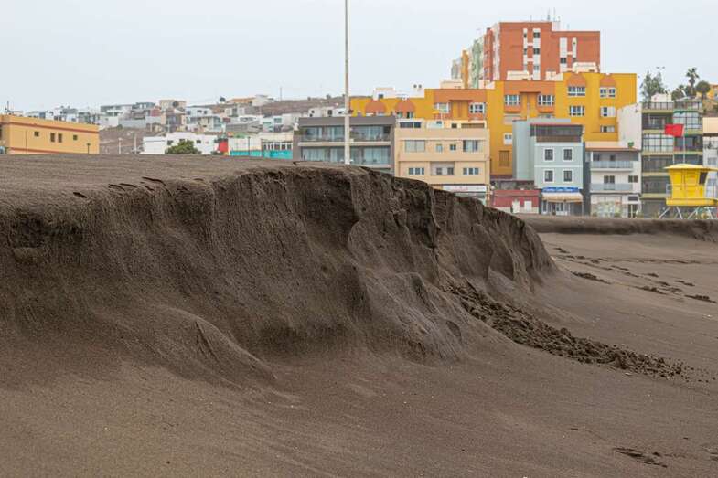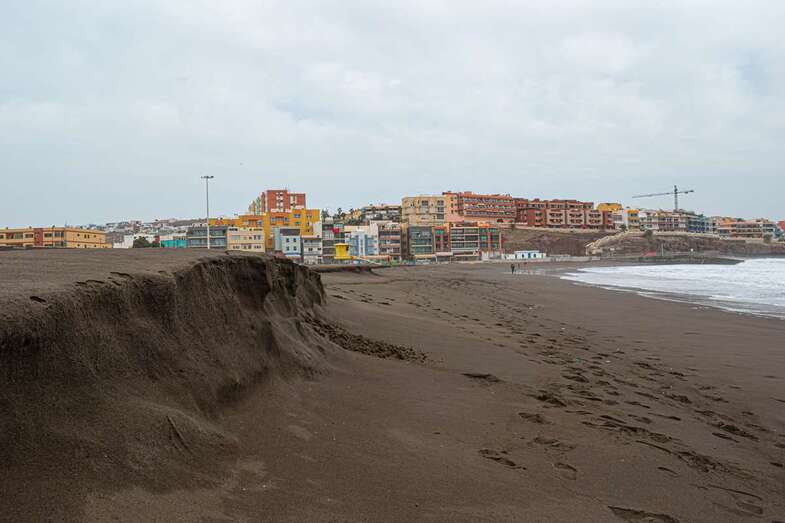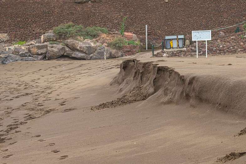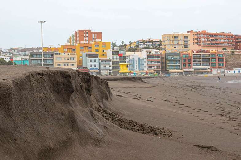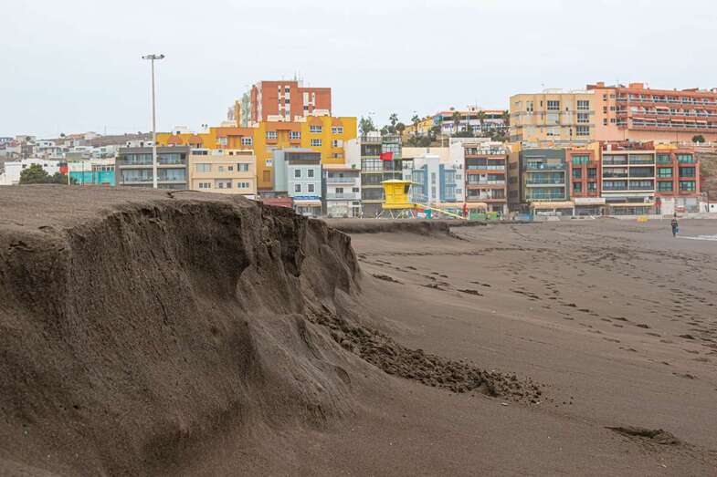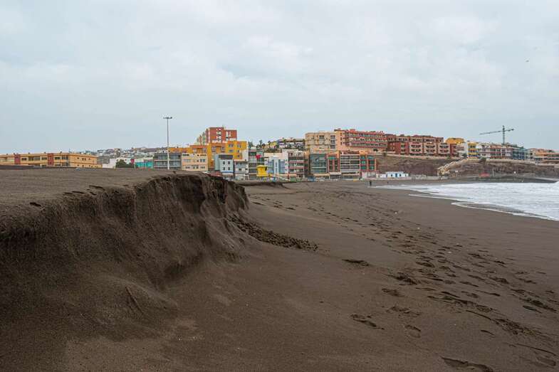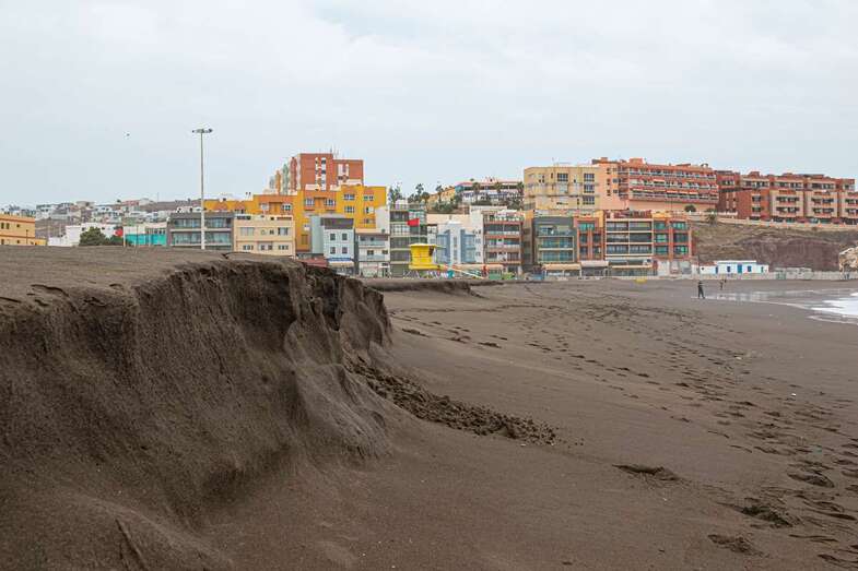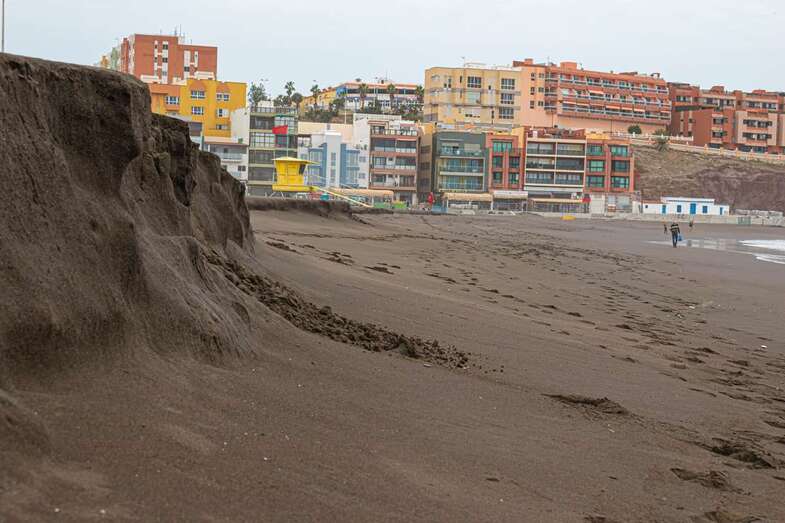 El fuerte oleaje que ha azotado la costa de Telde en los últimos días ha provocado un llamativo talud en la arena de la playa de Melenara de casi un metro de altura, un fenómeno natural que también se ha dado en la cala de La Garita.