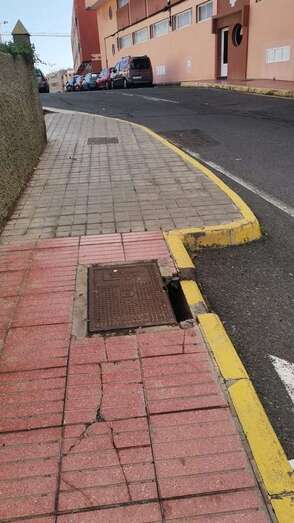 Vecinos de la costa de Telde han advertido el peligro que supone una arqueta rota ubicada en una de las aceras de la subida a Taliarte.