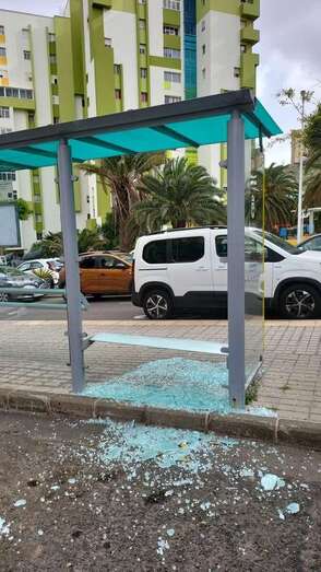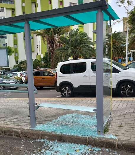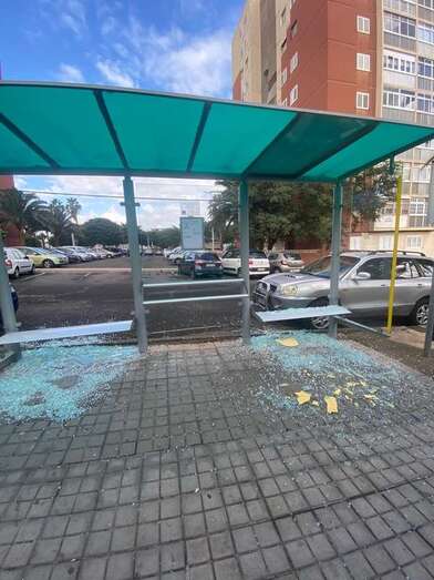 Vecinos del Valle de Jinámar han denunciado la rotura de la mampara de cristal trasera de la marquesina de la parada de guaguas situadas en la zona de Eucaliptos I, producto al parecer de un acto de vandalismo. Reclaman su arreglo para que la gente pueda guarecerse de la lluvia.