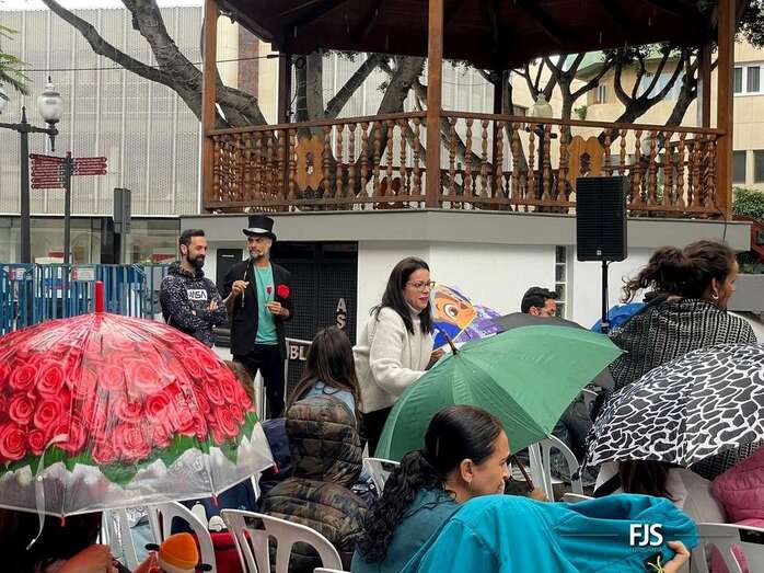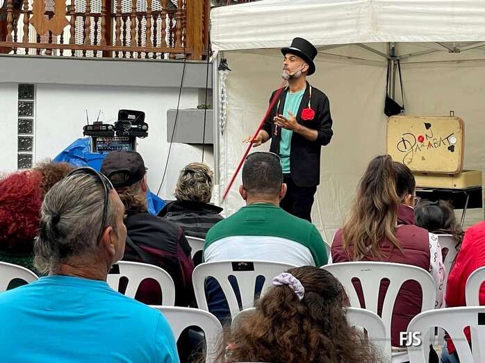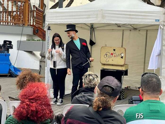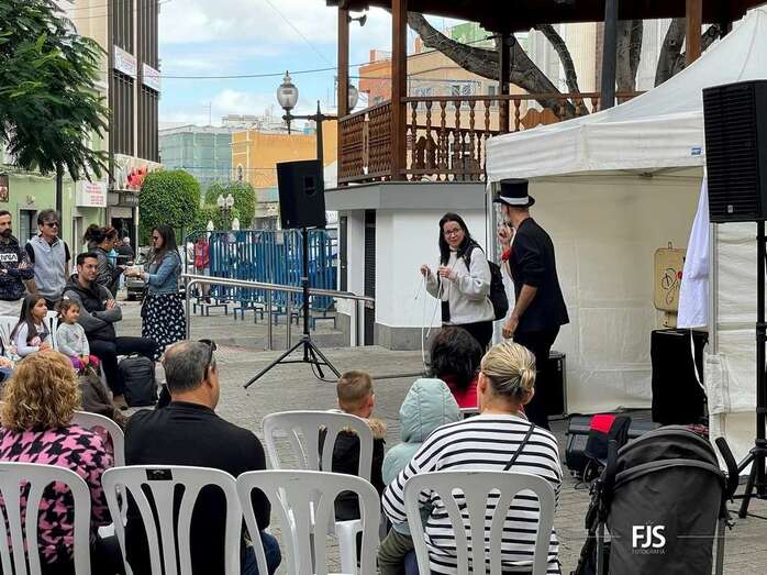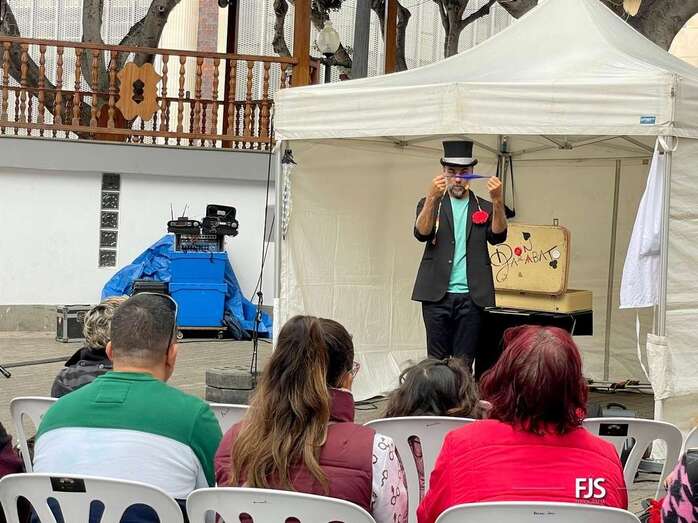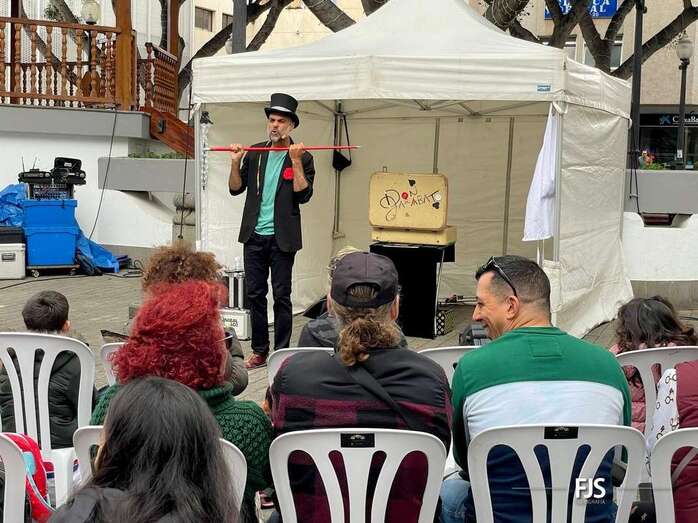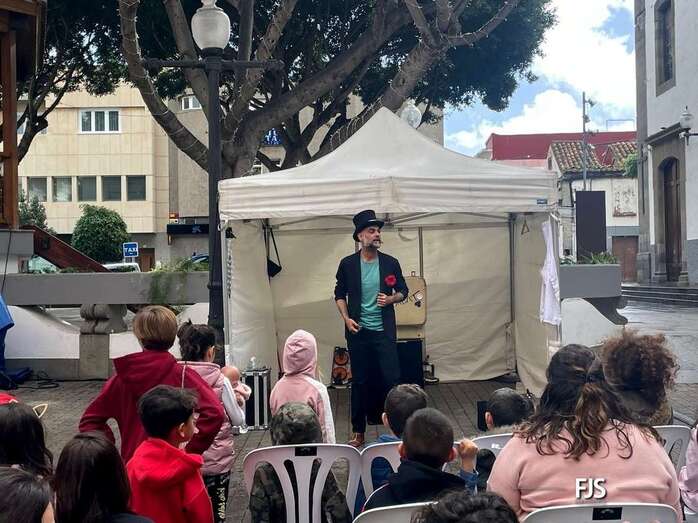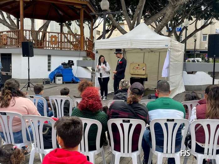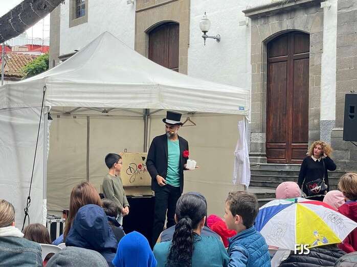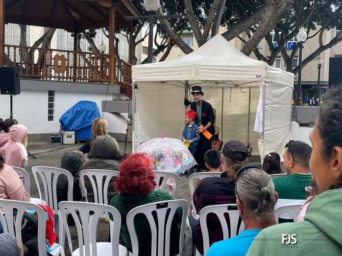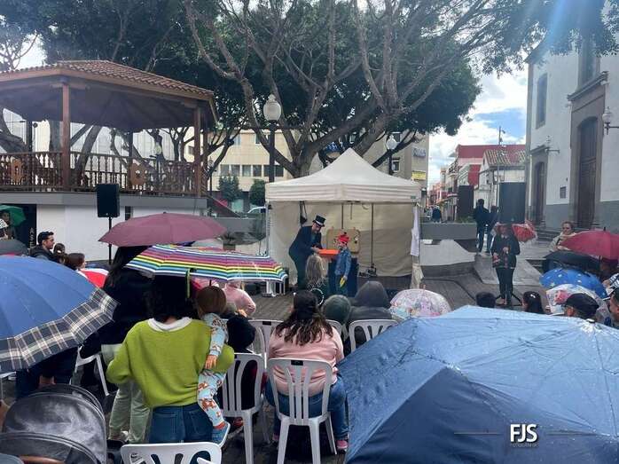 A pesar de la lluvia a ratos, el espectáculo familiar El viaje de Don Garabato, organizado por la Concejalía de Cultura y la empresa pública Gestel, deleitó este sábado a niños y adultos en la plaza de Los Llanos de Telde.