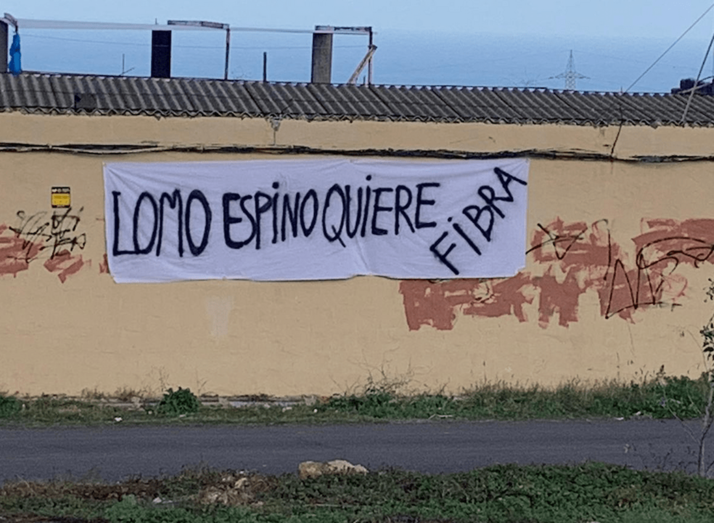 Lomo Espino es un pequeño barrio de Telde, próximo a Lomo Pollo, en el que todavía no se ha desplegado la fibra óptica. Los vecinos critican que en pleno siglo XXI, y pese a su proximidad al casco urbano de la ciudad, no puedan disponer de este servicio básico.
