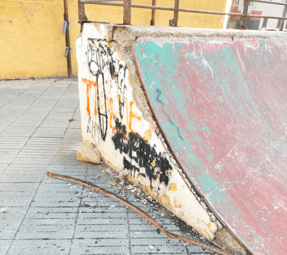 Vecinos del barrio de La Garita denuncian el mal estado en el que se encuentra, desde hace años, la rampa de skate ubicada junto al colegio y a la cancha deportiva. Un espacio muy frecuentado por pequeños y jóvenes pero que a día de hoy es todo un peligro.