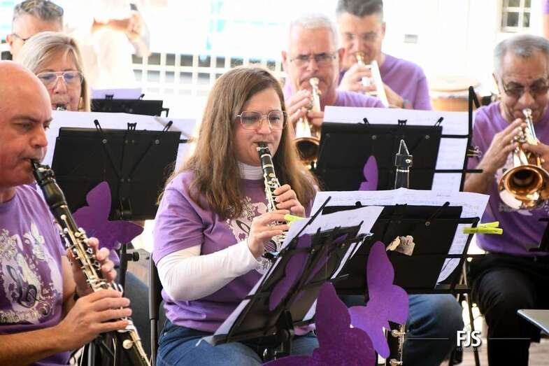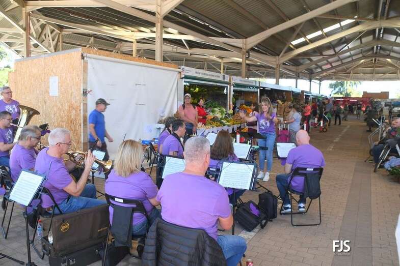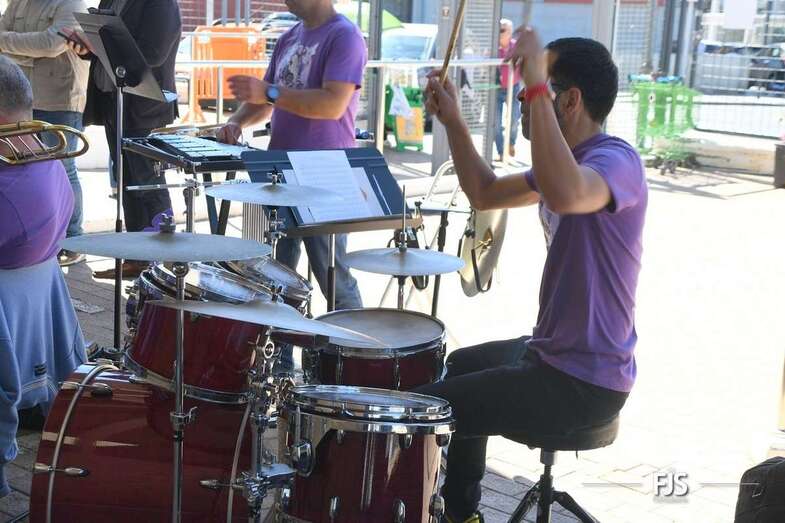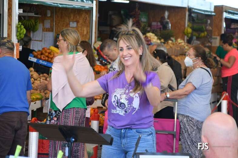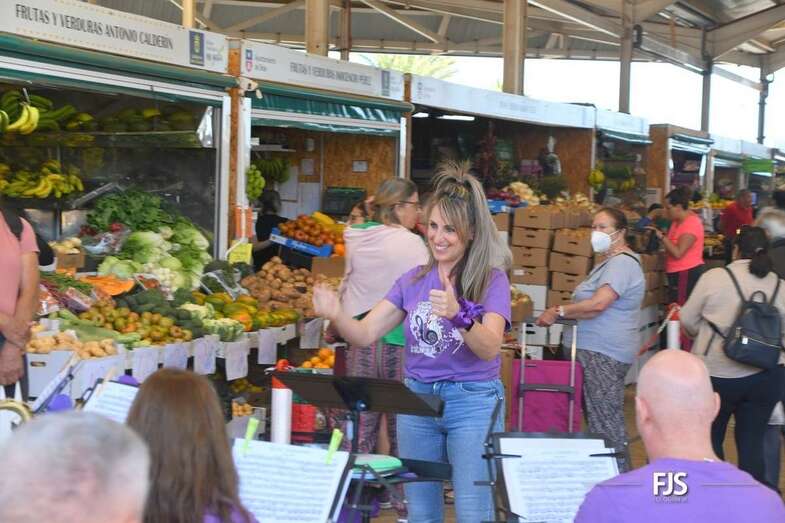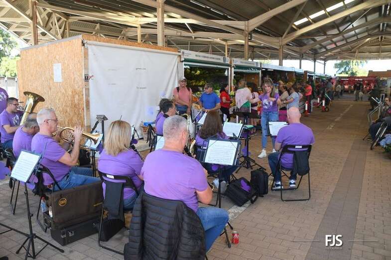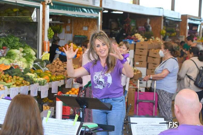 La Banda de Música de Telde ofreció este viernes un concierto en el recinto polivalente de Narea, que acoge provisionalmente a los puestos del Mercado Municipal, en un acto enmarcado en la programación del 8M, Día Internacional de la Mujer.