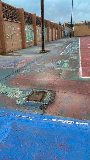 Vecinos de La Garita denuncian el "lamentable" estado de abandono en el que se encuentra la cancha deportiva de La Garita. Además de las múltiples deficiencias que presenta esta instalación, advierten de un foco que peligra con caer al vacío y que podría lesionar a alguien.
