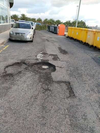 Vecinos de la parte baja de El Calero denuncian los daños que están ocasionando unos baches de la calle Ajodar en la intersección con Ansite. El tamaño de estos socavones es tal que ya se han cobrado varias víctimas, llantas de vehículos que han sucumbido al pasar sobre ellos.