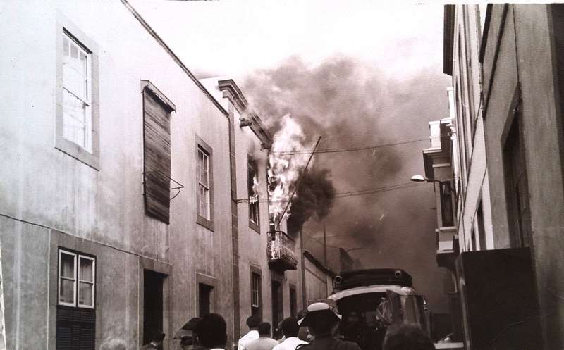 Fue un lunes, 27 de julio, hace ya más de medio siglo. El fuego, que según las indagaciones se desató a media tarde por un cortocircuito, arrasó el número 6 de la por entonces calle Calvo Sotelo del barrio de San Juan, hoy rebautizada como Julián Torón en honor al poeta de la Escuela Lírica de Telde.