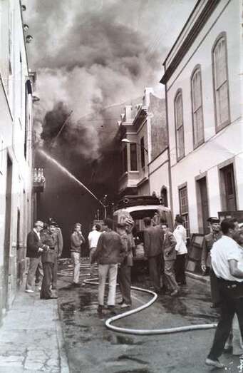 Telde.- Corría el verano del 64, apenas un mes después de que la Selección Española de Gento, Amancio, Iribar, Zoco y compañía se proclamara campeona de la Copa de Naciones de Europa –hoy Eurocopa– en el Santiago Bernabéu al vencer por 2-1 a Unión Soviética, cuando un virulento incendio devoraba la antigua oficina de Correos en el casco de Telde. TA ofrece crónica e imágenes inéditas del suceso.