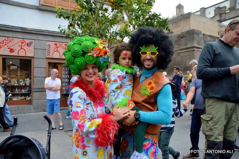 Telde.- La eterna primavera floreció hoy en el casco histórico de Vegueta. Miles de personas, entre llas cientos de teldenses, disfrutan desde el mediodía del Carnaval de Día. Un evento que en los últimos años ha ido ganando adeptos y se ha convertido en uno de los de mayor afluencia de todas las carnestolendas capitalinas. TA ofrece dos amplios reportajes gráficos.
