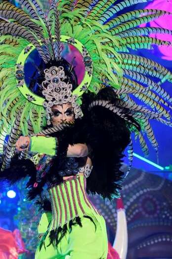 1. Drag La Tullida presentó en representación de Ron La Indiana, el espectáculo Aunque la bella se vista de seda, marica se queda, con un vestuario creado también por Nelson Rodríguez -Drag Valquiria- y, además, por Rafael Déniz.