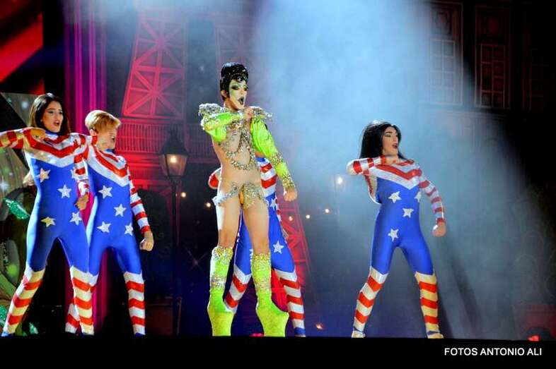 Una fantástica obertura que incluyó danzas tradicionales europeas abrió la gran noche, para continuar con la entrada de la presentadora Silvia Superstar y Roberto Herrera, que llegó al escenario del Eurocarnaval en un clásico vehículo de bomberos para “apagar los fuegos que iba a encender la noche más transgresora”.
