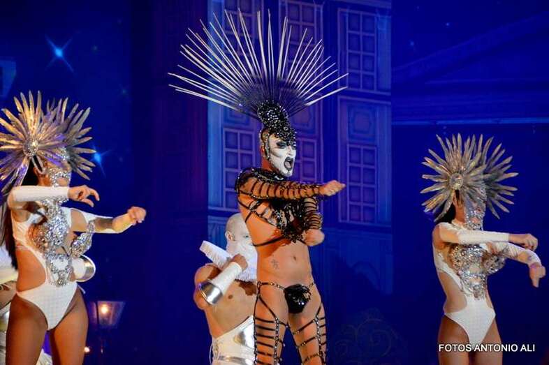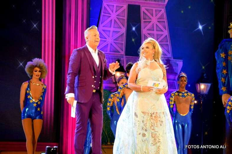 El ritmo de la eurogala drag lo continuaron la comparsa Aragüimé y el grupo Fly Project, aterrizados en Maspalomas directamente desde Rumanía, y que convirtieron el escenario de Europa en una auténtica discoteca.