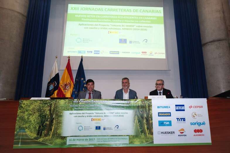 El objetivo de la Consejería de Obras Públicas e Infraestructuras es que el próximo año, en buena parte de los 1.000 kilómetros de vías de competencia insular, se utilicen estas fórmulas eficientes, subrayó días atrás el consejero del área, Ángel Víctor Torres, en la clausura de las XXII Jornadas de Carreteras en Canarias, en la que los especialistas participantes abordaron los nuevos retos en carreteras ecoeficientes con la utilización de pavimentos reciclados, caucho y mezclas calientes.
