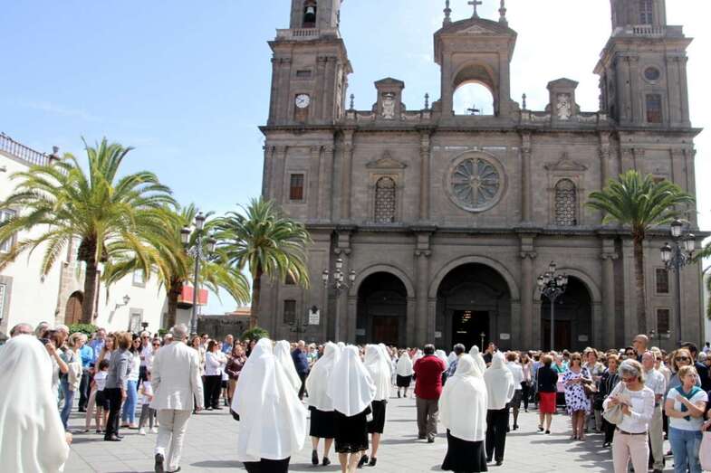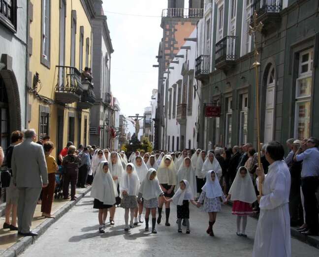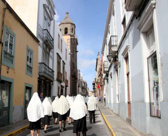 Telde.- La procesión de Viernes Santo por las calles de Vegueta que comenzó a las 11:00 horas se vistió de blanco con la tradicional mantilla canaria, una costumbre muy antigua que el Cabildo de Gran Canaria recuerda por estas fechas.