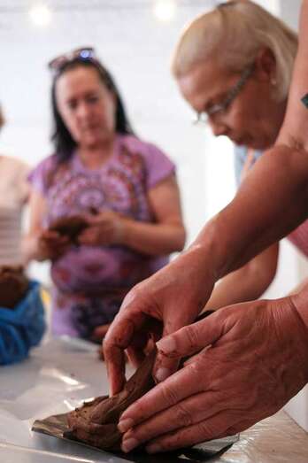 Además, realizarán piezas de la alfarería aborigen, más antigua que la tradicional y que está representada por piezas de formas más extrañas y, en ocasiones sin uso conocido, asegura la artesana Mila Ríos, que aprendió el oficio hace 15 años en una universidad popular de la capital grancanaria y lo perfeccionó con maestros alfareros de La Atalaya de Santa Brígida.