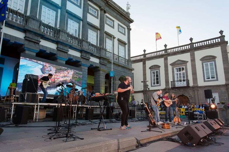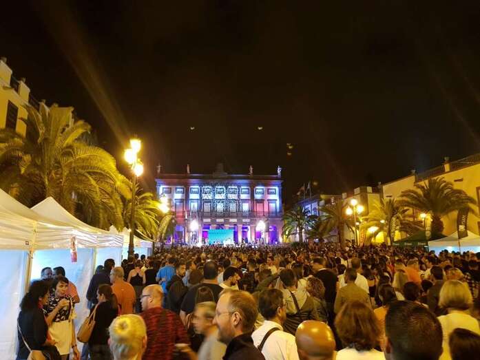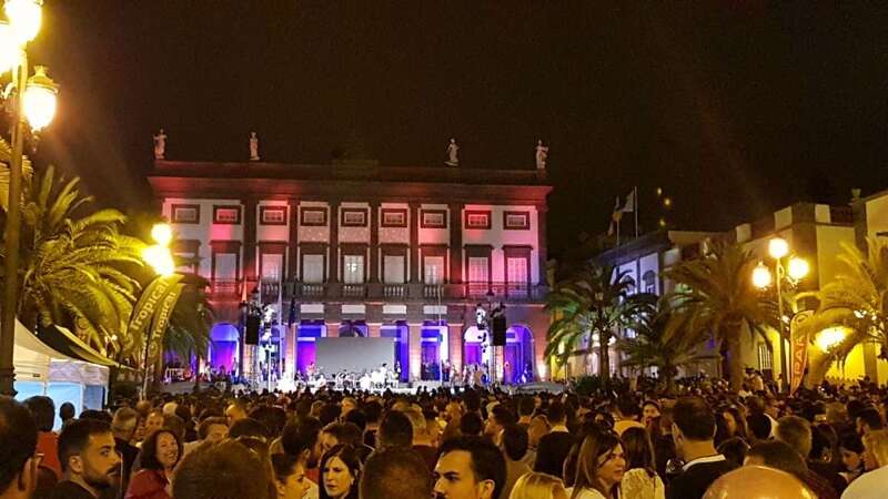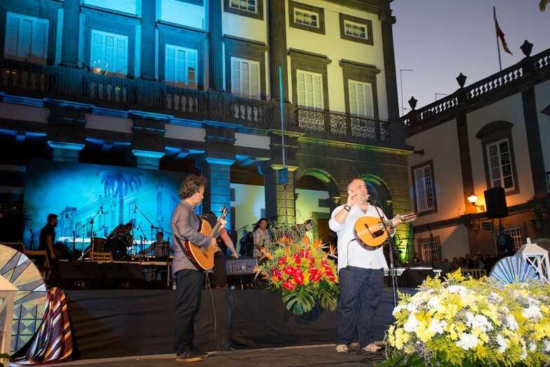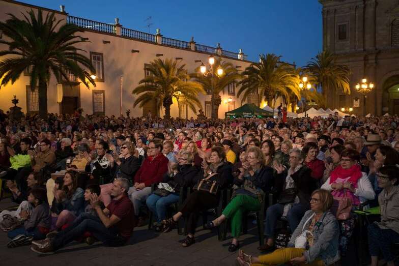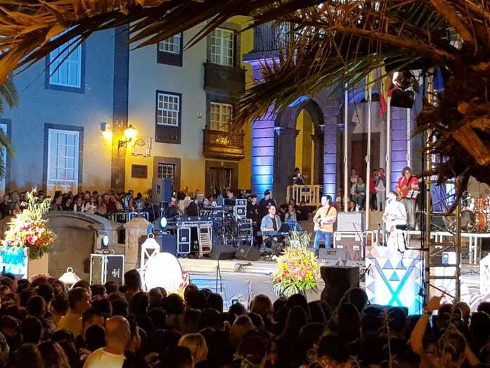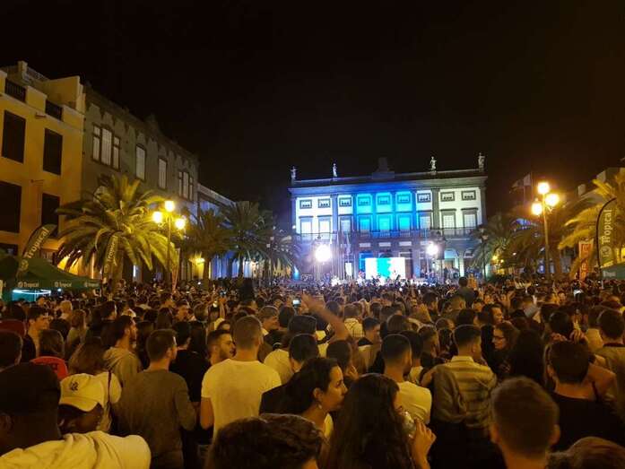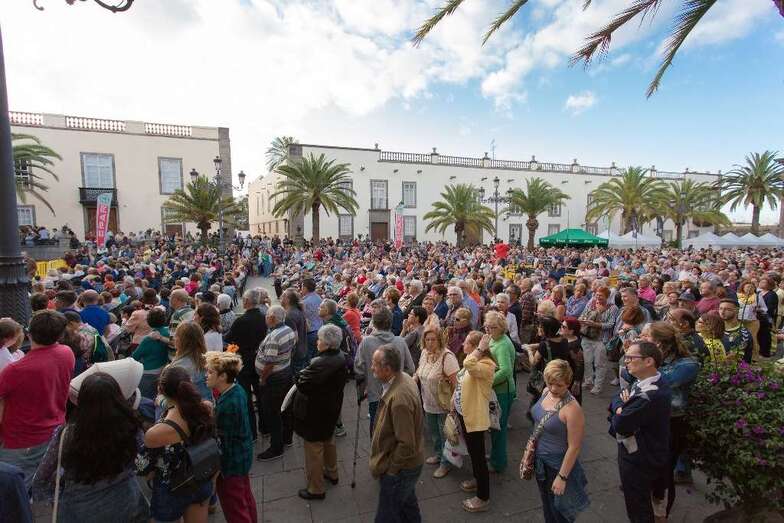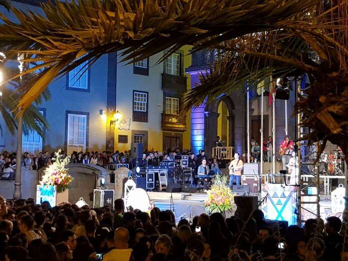 El enclave elegido para este regreso fue Vegueta, en cuyo entorno hacía más bien frío hasta la llegada a la Plaza de Santa Ana, donde el calor de la gente subía la temperatura y el ánimo, un público que empezó a llegar desde media tarde, cuando comenzó el programa con la Banda de Agaete desde San Telmo.