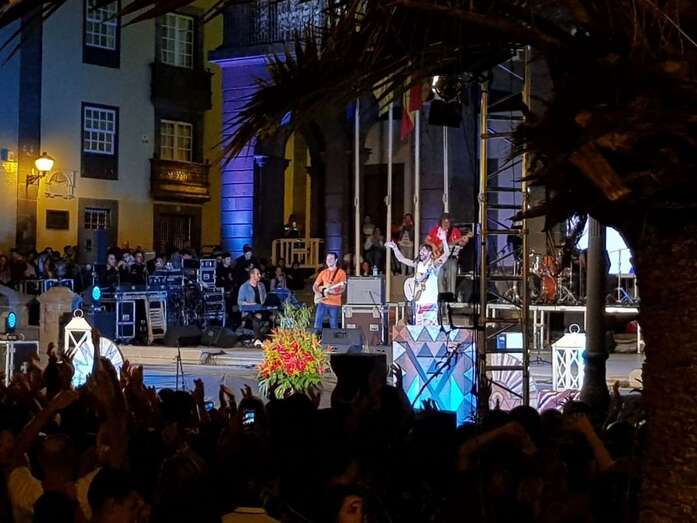 Tras la ovación por la gesta de los grancanarios, Los Gofiones retomaron el escenario con un público ya en plena efervescencia y lo deleitó con sus más emotivos temas isleños hasta el turno de El Vega, una figura que no quisieron perderse muchísimos jóvenes llegados al lugar para no perdérselo.