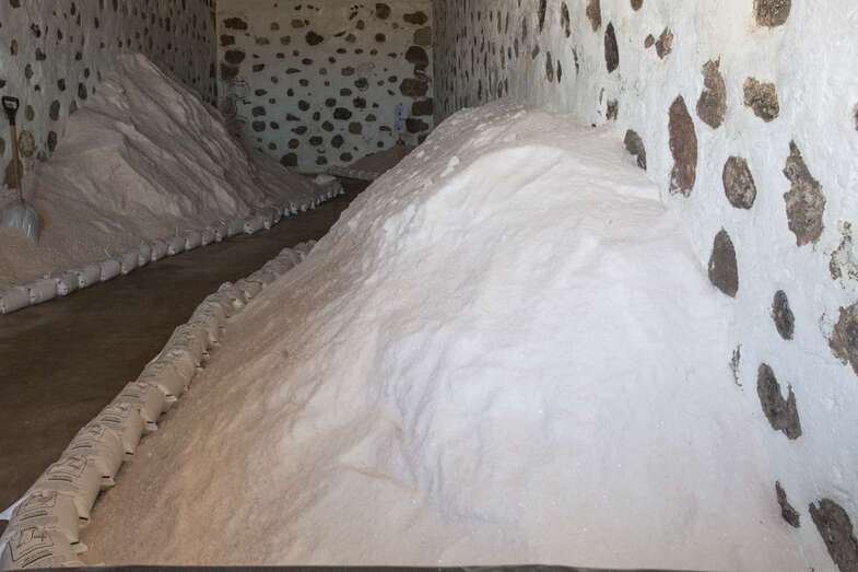 Así, cuenta con un tomadero que sirve de canal de captación, los cocederos o estanques donde el agua del mar se concentra, y los cristalizadores o tajos, cerca de 400, donde la sal se convierte en grano y producto alimentario.