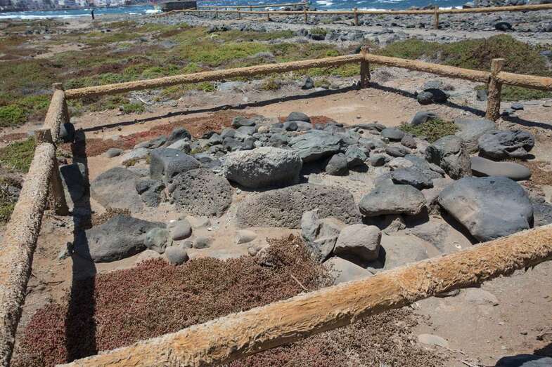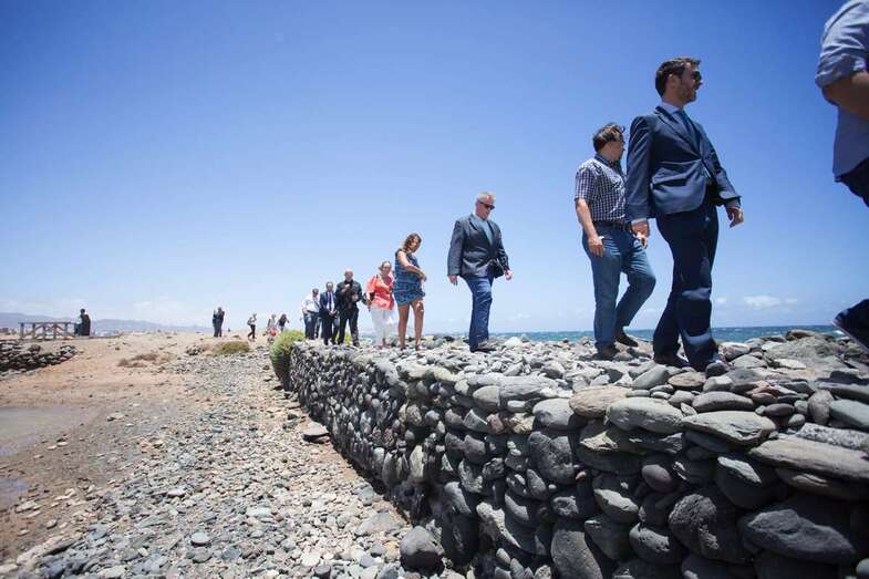 Junto al ingenio salinero se encuentran estructuras funerarias en las que el Cabildo, explicó Morales, ha invertido 32.000 euros para acometer dos campañas arqueológicas. Además habrá una próxima intervención, ya que están afectadas por la evidente subida del nivel de mar, que alcanza ya los depósitos de los antiguos canarios.