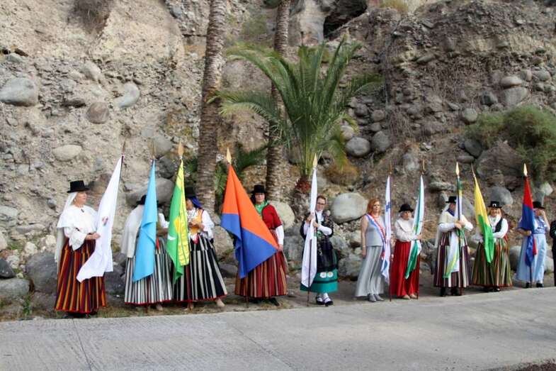 Las Banderas portadas por señoritas ataviadas con trajes típicos de las localidades o parroquias (hoy ciudades o villas) que teniendo Compañías de Milicias sufrieron bajas ente sus filas en la invasión holandesa, hoy representativas de los municipios de la: Ciudad del Real de Las Palmas de Gran Canaria. Ciudad de Telde. Villa de Agüimes. Ciudad de Arucas. Real Ciudad de los Caballeros de Gáldar. Villa Mariana de Teror. Villa de Santa Brígida. Vega de San Mateo. Villa de Valverde de Mérida (Badajoz), lugar de nacimiento del Gobernador Militar Alonso Alvarado y Ulloa. Villa de Leiderdorp Países Bajos (Holanda), localidad de nacimiento de Peter van der Does, Almirante Jefe de las Fuerzas invasoras holandesas. La Bandera Coronela del Regimiento de Infantería Ligera CANARIAS-50 “El del Batán” Heredero de las Milicias del Real de Las Palmas.