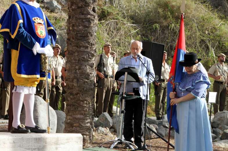Acto presentado y coordinado por el Teniente de Infantería Veterano Paracaidista, D. Antonio Contreras Puerta, que inicia las presentaciones de las personalidades que intervienen ante el Monumento, Castillo de Mata y Santa Brígida, expone: “Los grancanarios capitaneados por el lugar teniente Antonio Pamo Chamoso que toma el mando al quedar herido de muerte en el desembarco su gobernador Alonso Alvarado, logra reunir 1.500 hombres entre militares, milicianos y naturales del lugar, derrotando a los holandeses en la Batalla del Batán, expulsándolos por el mar. Los holandeses atacaron al Real de Las Palmas con 74 barcos y 12.000 hombres de combate. Pero el tiempo cura las heridas de los enfrentamientos bélicos, pero no se olvida. Por eso, se encuentra ante nosotros como invitado de Honor, don Stan Weytjens, Cónsul de los Países Bajos de Holanda en las Islas Canarias. El Regimiento de Infantería Ligera Canarias-50 “El del Batán” es Heredero de los Tercios del Real de Las Palmas, Guía y Telde, que mandaron al pueblo hecho milicia voluntaria en defensa de Gran Canaria contra los holandeses invasores. Este Regimiento está hoy al mando de Don Marcelo de Carlos Huarte, Coronel Jefe del Regimiento que pronunciará unas palabras”. Después de la intervención del Coronel De Carlos Huarte, interviene el Presidente del Cabildo de Gran Canaria, Excmo. Sr. don Antonio Morales Méndez.