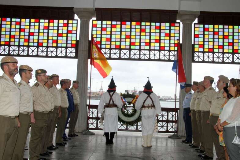 En el Muelle de Santa Catalina a las 11 de la mañana del lunes 3 de julio bajo la marquesina tiene lugar la ofrenda de una corona de laurel encintada con los colores de las banderas de Los Países Bajos (Holanda) y España, que es ofrecida al mar en memoria de todos los fallecidos en la Gesta de 1599, ellos dieron su vida en la Batalla del Real de Las Palmas y en la Batalla del Batán en Santa Brígida. La corona es lanzada al mar de esta bahía de manos del Teniente General don Pedro Galán García y del Cónsul Honorario de Holanda don Stan Weytjens, con el toque de Oración por el cornetín de órdenes del Regimiento Canarias-50 “El del Batán”.