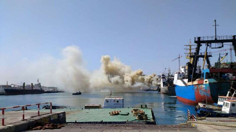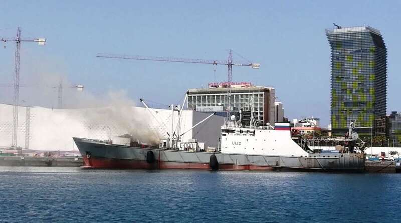 Un pesquero ruso se incendia en el Puerto de La Luz