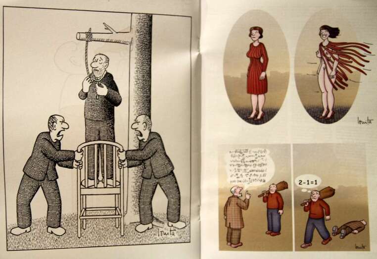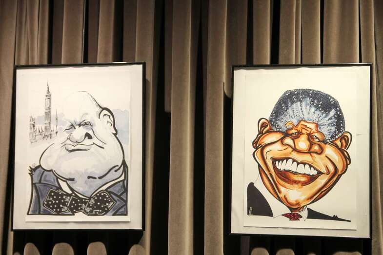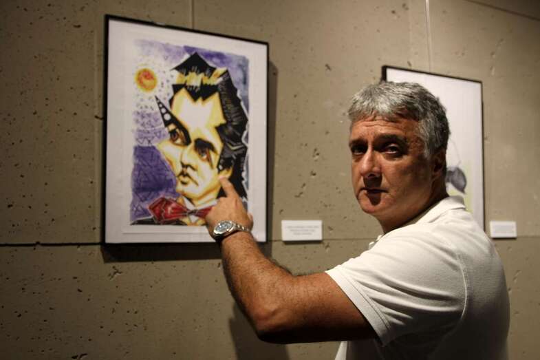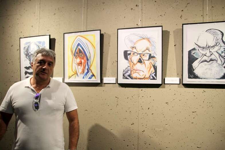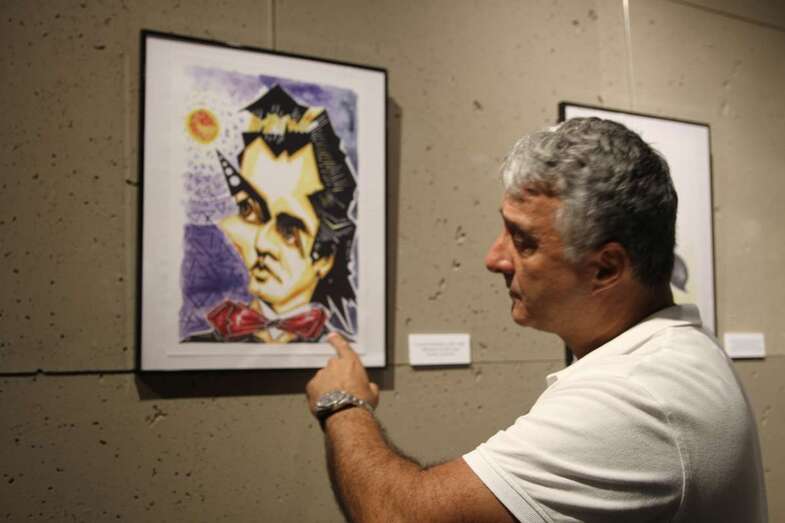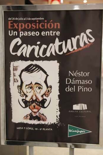En la reciente exposición “Un paseo entre caricaturas” inaugurada el 26 de julio en la Sala Ámbito Cultural del Corte Inglés de Las Palmas de Gran Canaria, que permanecerá abierta al público hasta el domingo 3 de septiembre, se exhiben las caricaturas de personajes representados en láminas que muestran la técnica empleada por el artista, acuarela para el color, sombreados y trazos de tinta para los perfiles.