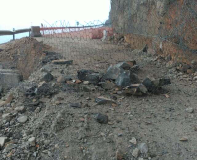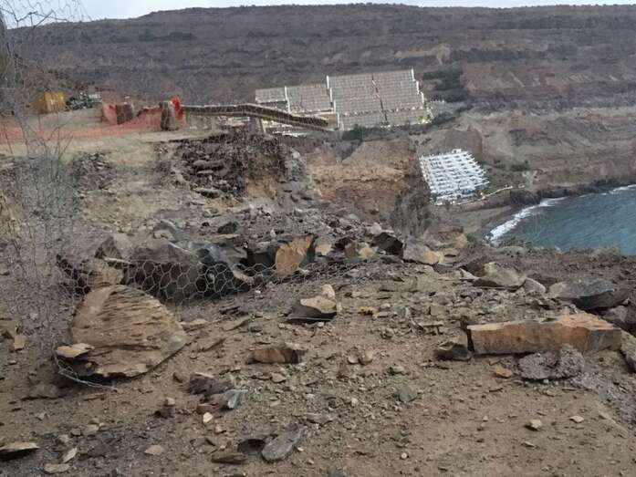 Según explicó este martes el consejero de Obras Públicas, Ángel Víctor Torres, durante la madrugada cayó una importante cantidad de rocas pesadas y piedras sobre la estructura de mallas que el Cabildo acababa de sanear, sobrepasando el material la carretera hacia el barranco. Esta circunstancia obligará a paralizar los trabajos y realizar una reevaluación técnica de la situación.
