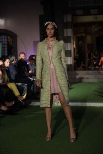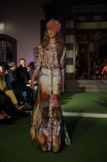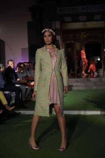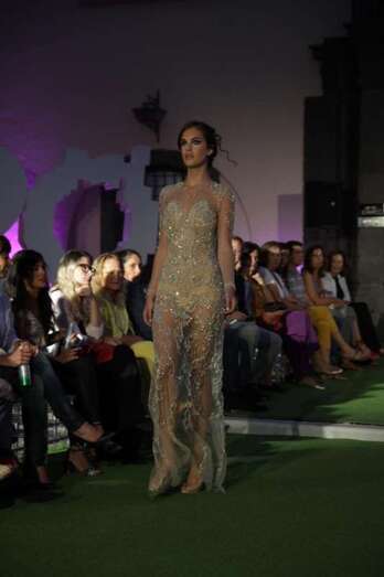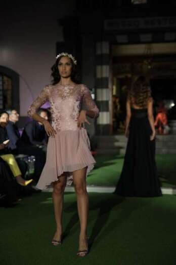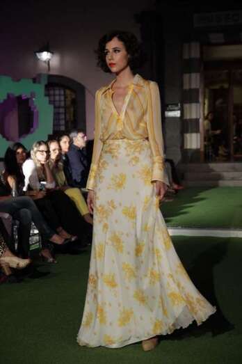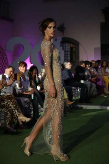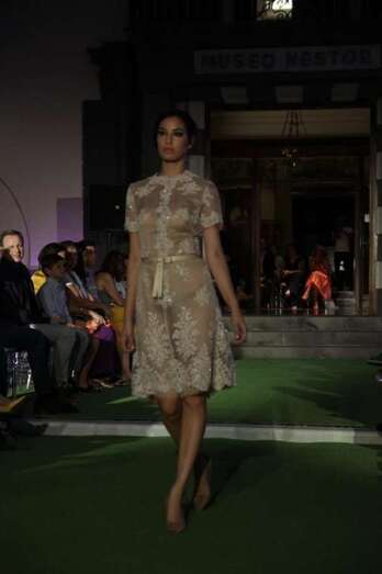 Elena Rubio ofreció al público diseños ligeros, vaporosos, con mezclas de tejidos naturales como la seda en la base del diseño y decorados en encajes, apliques y bordados que hacen únicos sus vestidos.