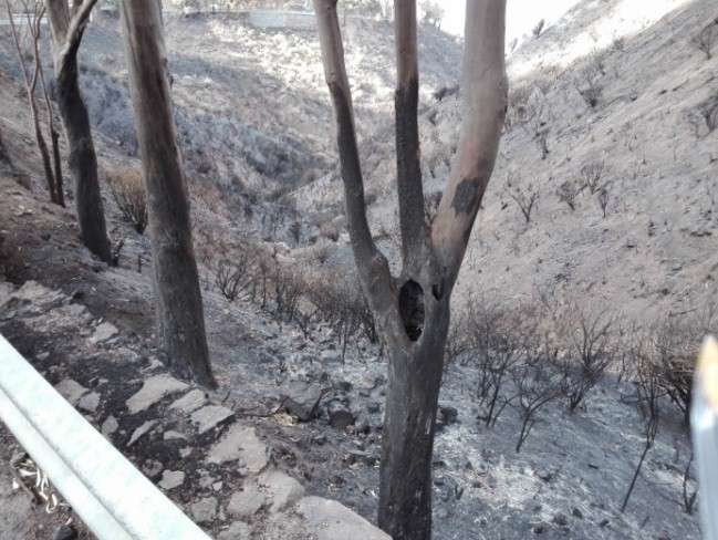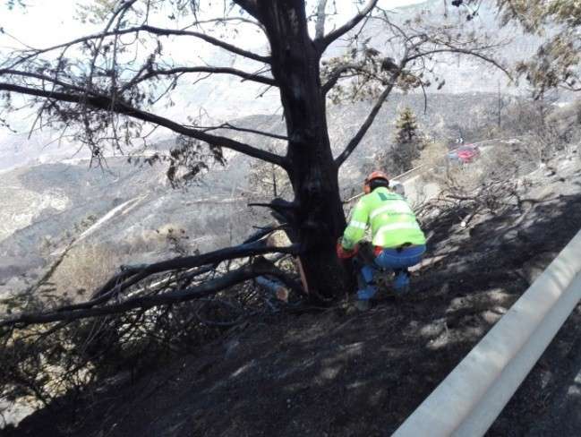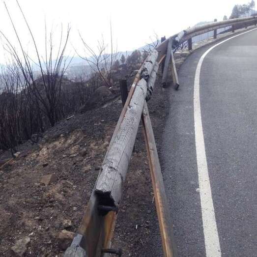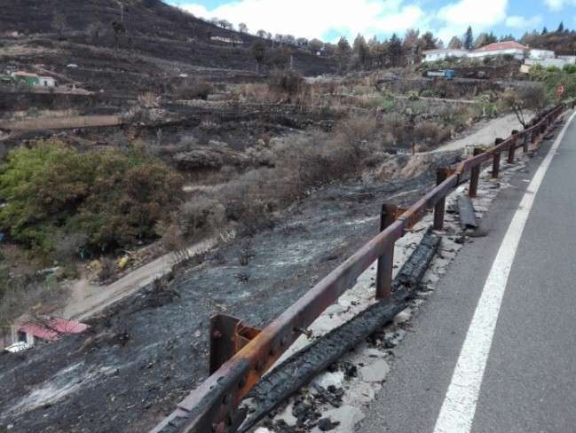 Los trabajos incluyen también la eliminación de la arboleda que quedó totalmente carbonizada en los márgenes de las vías, pino y ciprés fundamentalmente, lo que supone un riesgo para la seguridad de los vehículos y los peatones por la posible caída sobre la calzada, como ocurrió en los días posteriores al incendio, cuando fueron retirados por el servicio de Conservación de Carreteras del Cabildo para garantizar la movilidad y seguridad de los usuarios.