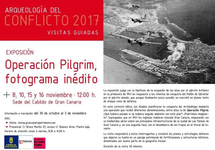 La singular y curiosa muestra, impulsada con motivo de la segunda edición de las Jornadas Arqueología del Conflicto que se celebró la pasada semana, está integrada por fotogramas inéditos en los que se plantea un ejercicio de historia alternativa alrededor de la iniciativa militar planteada en 1941 por los ingleses, que contemplaba el bombardeo aéreo sobre las principales infraestructuras de la ciudad de Las Palmas de Gran Canaria en el caso de que el Peñón de Gibraltar fuese ocupado por Alemania, lo que finalmente nunca sucedió.