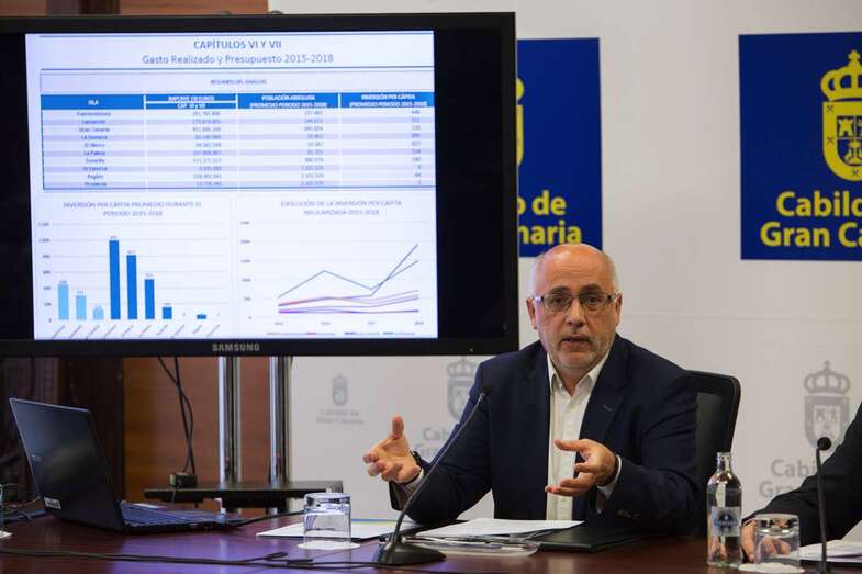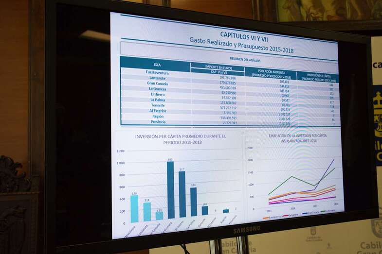 Con respecto a Gran Canaria y Tenerife, que son las dos islas equiparables, en 2018 la primera tiene una inversión de 130 millones con 155 euros por personas frente a los 154 millones, 174 por persona, que tiene la segunda.