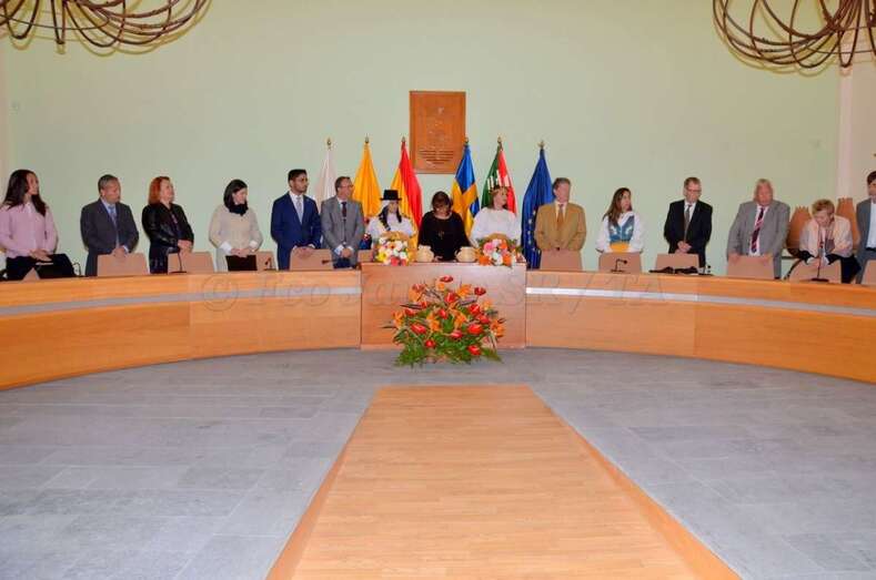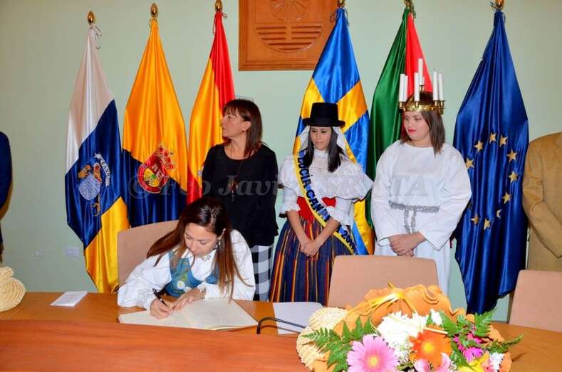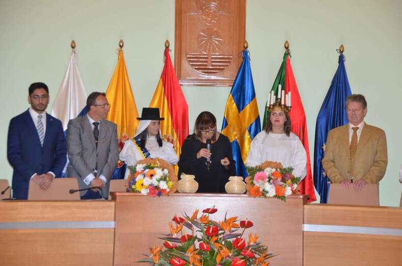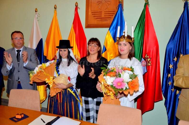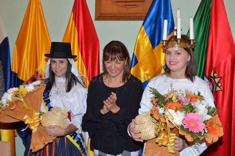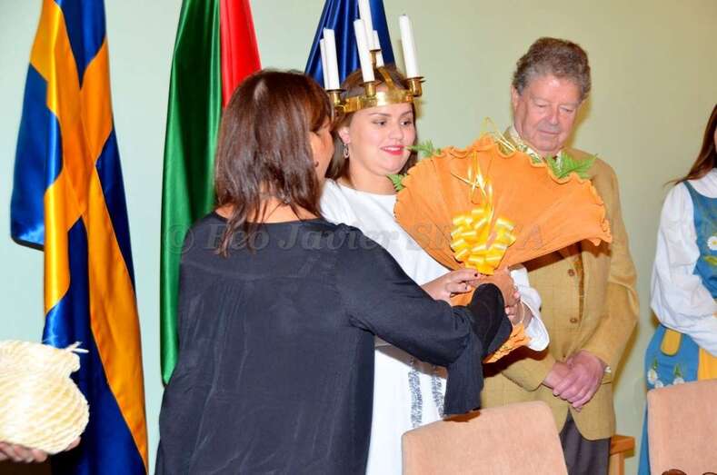 Durante el acto oficial, que contó con representación del municipio sueco, una comisión de educación, el Club de Leones de Luleå y la cónsul honorífica de Las Palmas Dunia Cubas, la alcaldesa hizo entrega a ambas Lucías de un balayo, elaborado por el maestro artesano del municipio Juanito Ramírez, unos pendientes típicos y un ramo de flores.