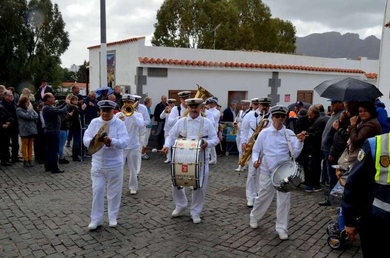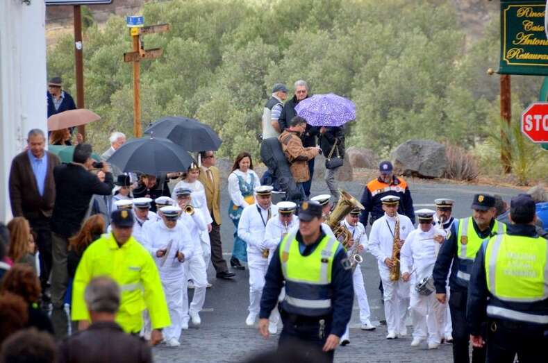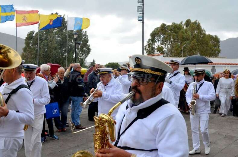 Terminada la misa solemne, con una iglesia abarrotada de feligreses, la imagen se asomó a la puerta, donde se celebró la ofrenda y el rito del agua y la leche. El mal tiempo, con riesgo de lluvia y fuertes vientos, suspendió este año la tradicional procesión por las calles del pueblo.