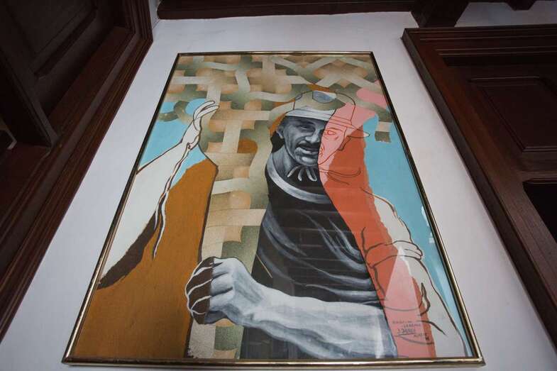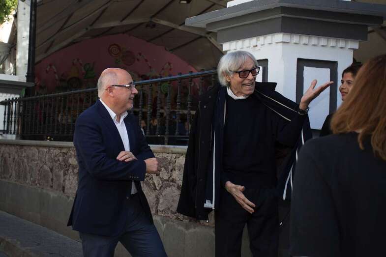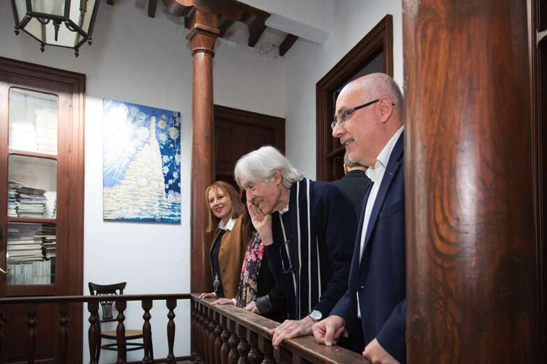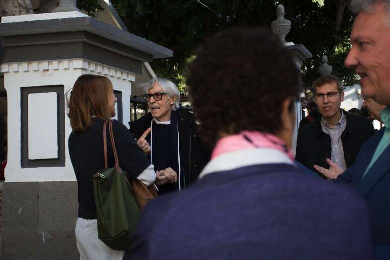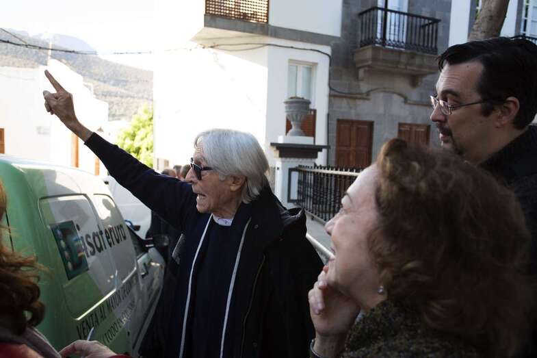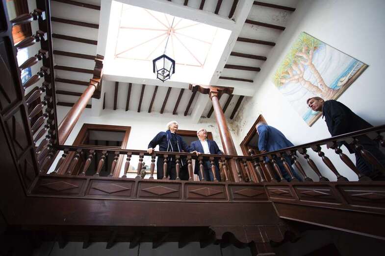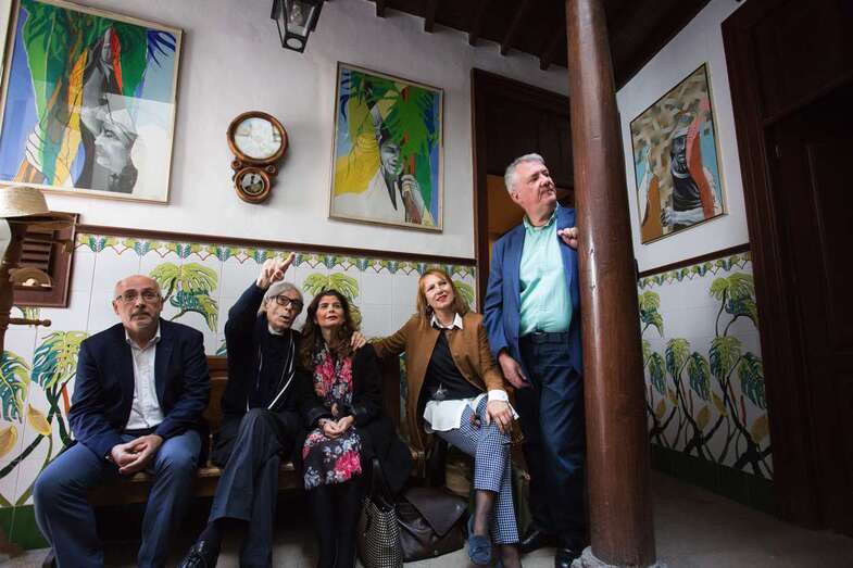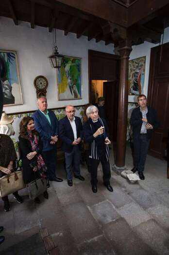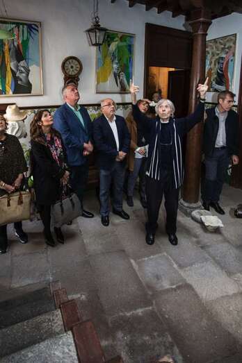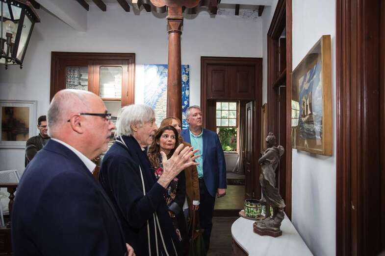 Dámaso mostró sus recuerdos también a la consejera de Turismo, Inés Jiménez, y a la teniente de alcalde y consejera insular de Política Territorial, Inés Miranda, quienes pudieron admirar las columnas de madera de las escaleras, unas piezas que pertenecieron a la casa que habitó en el pueblo Tomás Morales y que el artista recuperó.