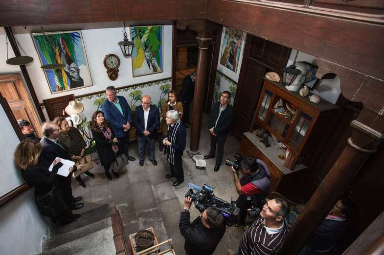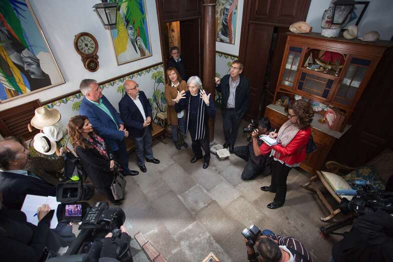 El compromiso fue anunciado hoy por el presidente del Cabildo, Antonio Morales, quien visitó junto al alcalde de Agaete, Juan Ramón Martín, la casa del artista, un inmueble tradicional situado en la Plaza de la Constitución, justo frente a la Iglesia, tanto es así que cuando el templo abre sus puertas, desde la biblioteca de la segunda planta, forma un eje con el altar, algo que Dámaso está seguro de que “no es casual”.