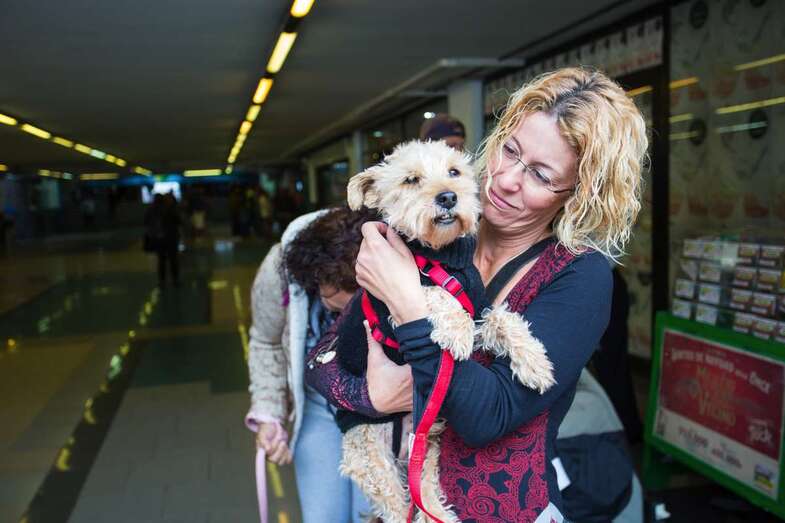 Las mascotas viajarán así dentro de un trasportín que no supere los 60 centímetros de largo, 35 de alto y 35 de ancho, que puede ser duro o blando, pero siempre con fondo impermeable para los residuos, y que, en definitiva quepa en las rodillas del propietario del animal.