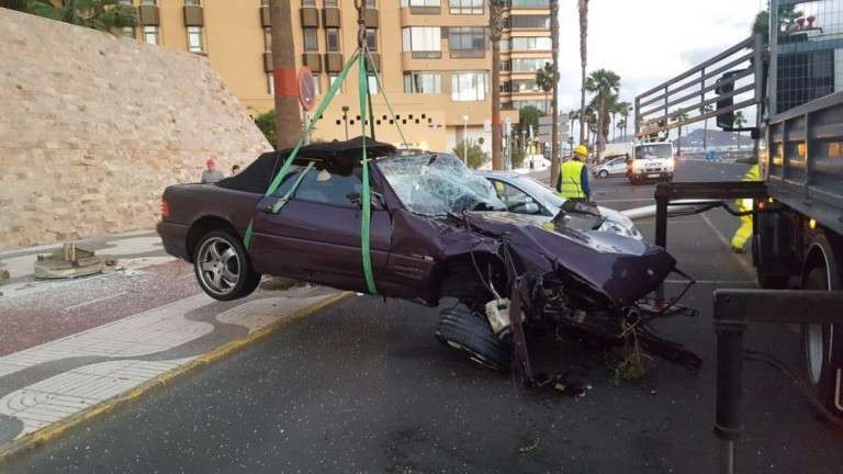 El siniestro se registró en la avenida marítima, a la altura de la Biblioteca Pública de la capital grancanaria, hacia donde se dirigieron los servicios de emergencias tras recibir un aviso de que había volcado un automóvil tras chocar contra la mediana, y había una persona atrapada en el interior de vehículo.