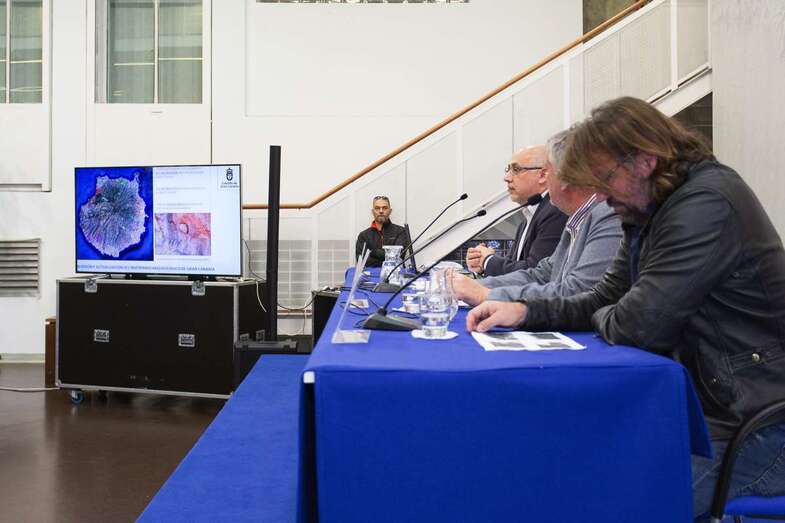 El presidente del Cabildo grancanario, Antonio Morales, y el consejero insular de Cultura, Carlos Ruiz, fueron los encargados de presentar la revisión del catálogo patrimonial, formado ahora por 1.053 lugares, el más antiguo de ellos del siglo IV y un centenar de ellos visitables.