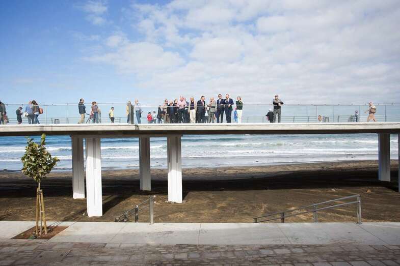 Posteriormente, el Consistorio capitalino presentó un proyecto de obra complementaria que incluye dos edificios en ambos extremos de la pasarela, donde se ubicará un puesto de Cruz Roja y un balneario.